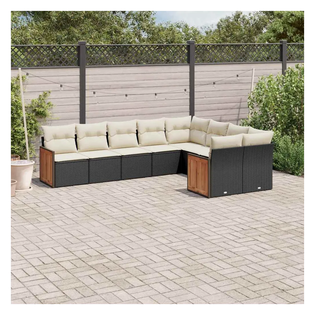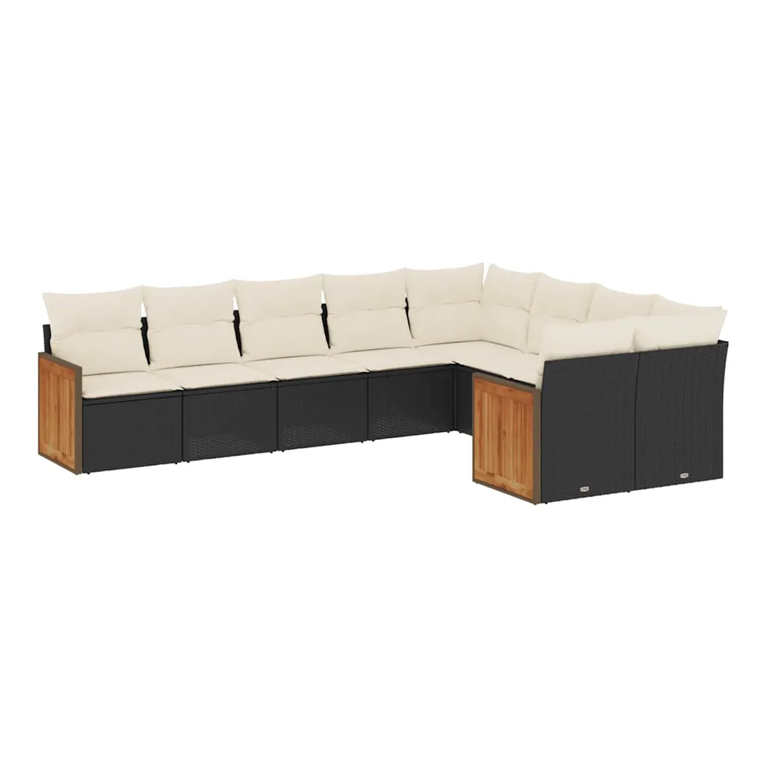 Salon de jardin 9 pcs avec coussins noir résine tressée