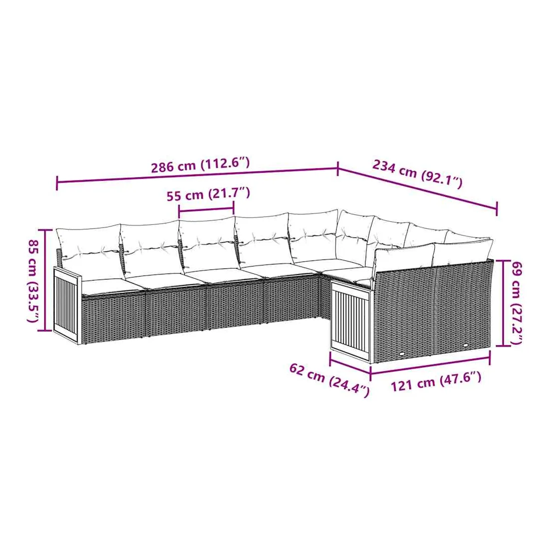 • 9 x coussin d'assise avec housse amovible et lavable