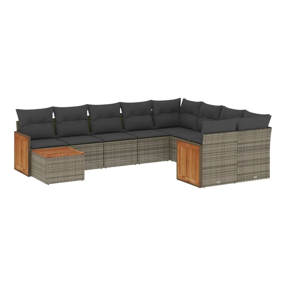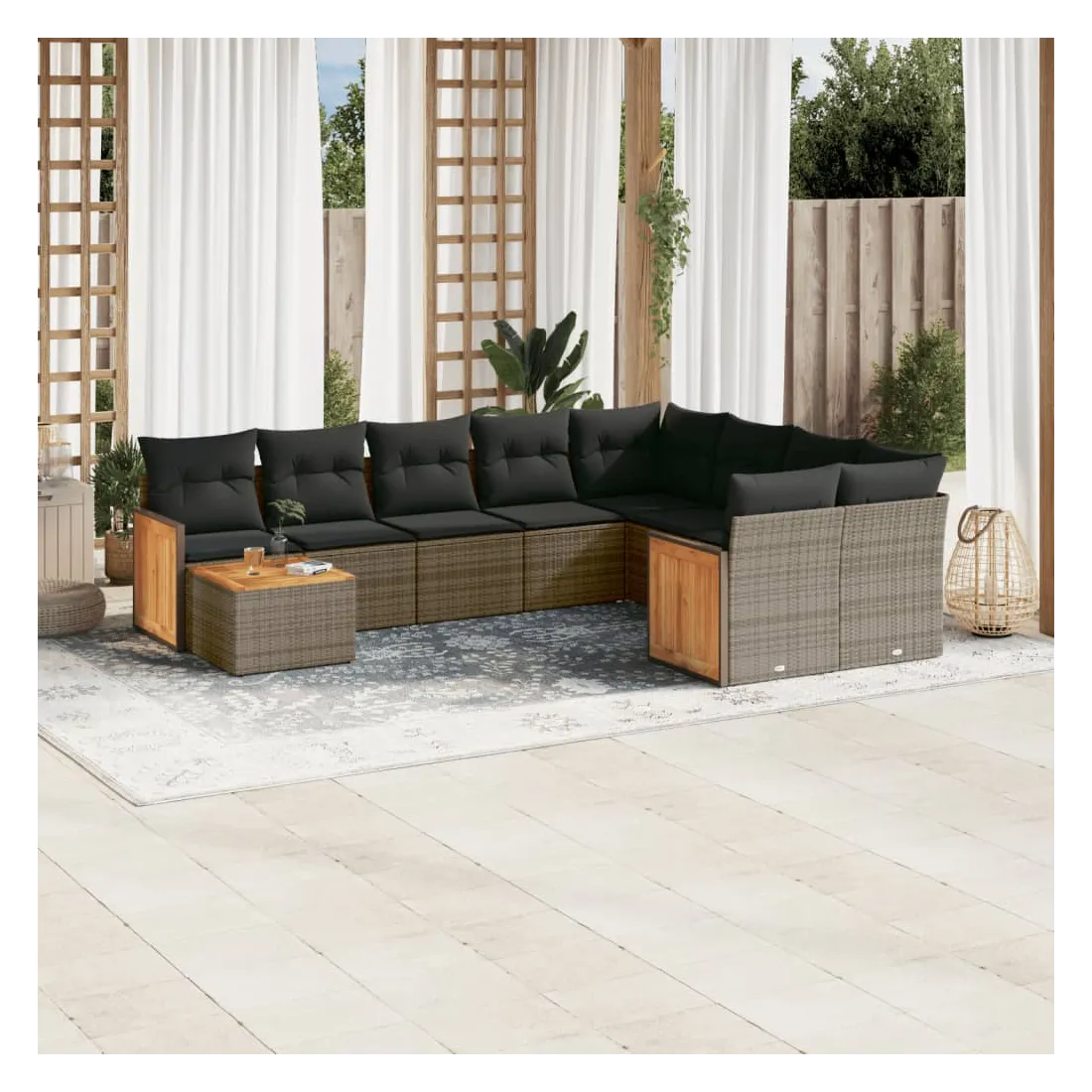 Cet ensemble de canapés de jardin est le complément parfait de votre arrière-cour, terrasse ou patio, offrant un espace confortable et accueillant pour discuter avec la famille et les amis ou simplement se détendre et profiter de l'extérieur. Matériau durable : la résine tressée, également connue sous le nom de poly rotin, est un matériau synthétique solide et nécessitant peu d'entretien qui ressemble au rotin naturel. Il est léger, facile à nettoyer et couramment utilisé pour les meubles d'extérieur en raison de sa durabilité et de ses propriétés de résistance aux intempéries.Fonction de rangement avec sac résistant à l'eau : le mobilier de jardin dispose d'un espace de rangement sous l'assise, complété par un sac résistant à l'eau pour ranger coussins, jouets et autres objets. Le sac intérieur peut être solidement fixé au mobilier d'extérieur grâce à des attaches auto-agrippantes pour plus de stabilité.Dessus stable et facile à nettoyer : cette table de jardin a un dessus en bois d'acacia robuste, durable et facile à nettoyer avec un chiffon humide.Housse amovible et lavable : ces coussins de siège sont dotés de housses amovibles pour un lavage et un entretien faciles.Conception modulaire : cet ensemble de meubles d'extérieur a une conception modulaire, ce qui le rend complètement flexible et facile à déplacer, afin que vous puissiez créer un agencement de meubles d'extérieur personnalisé. Bon à savoir :Pour que vos meubles d'extérieur restent beaux, nous vous recommandons de les protéger avec une housse imperméable.