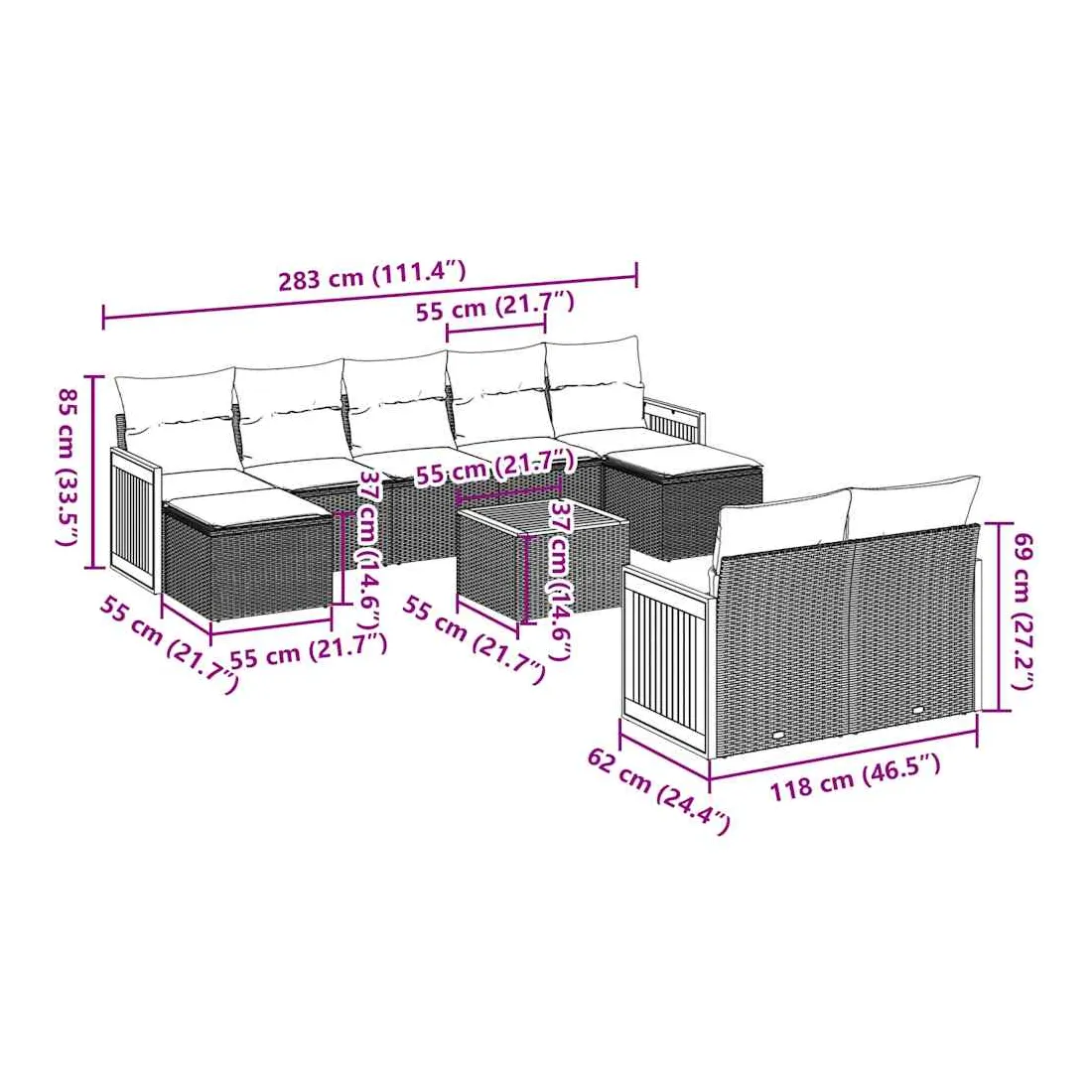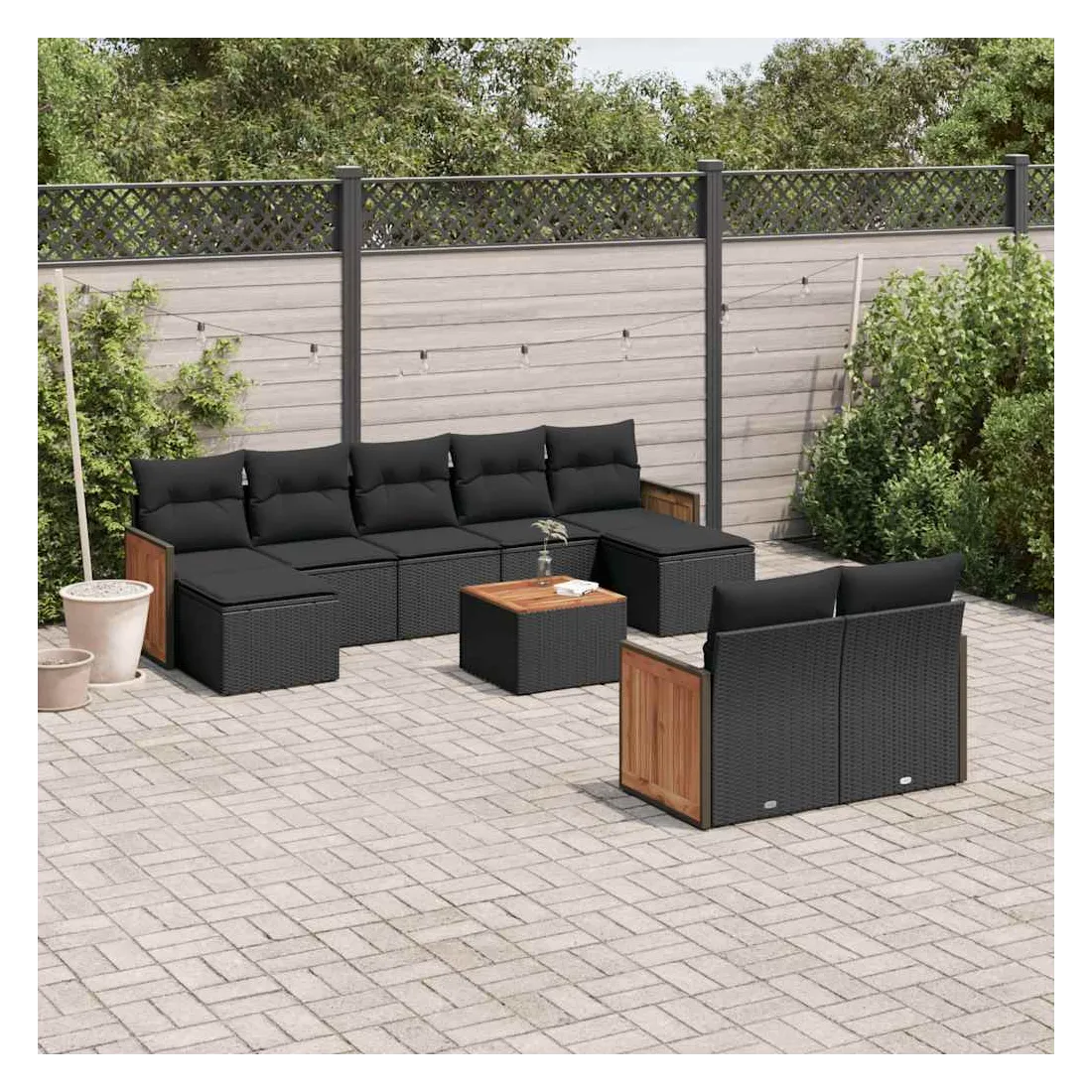 Cet ensemble de canapés de jardin est le complément parfait de votre arrière-cour, terrasse ou patio, offrant un espace confortable et accueillant pour discuter avec la famille et les amis ou simplement se détendre et profiter de l'extérieur. Matériau durable : la résine tressée, également connue sous le nom de poly rotin, est un matériau synthétique solide et nécessitant peu d'entretien qui ressemble au rotin naturel. Il est léger, facile à nettoyer et couramment utilisé pour les meubles d'extérieur en raison de sa durabilité et de ses propriétés de résistance aux intempéries.Fonction de rangement avec sac résistant à l'eau : le mobilier de jardin dispose d'un espace de rangement sous l'assise, complété par un sac résistant à l'eau pour ranger coussins, jouets et autres objets. Le sac intérieur peut être solidement fixé au mobilier d'extérieur grâce à des attaches auto-agrippantes pour plus de stabilité.Dessus stable et facile à nettoyer : cette table de jardin a un dessus en bois d'acacia robuste, durable et facile à nettoyer avec un chiffon humide.Housse amovible et lavable : ces coussins de siège sont dotés de housses amovibles pour un lavage et un entretien faciles.Conception modulaire : cet ensemble de meubles d'extérieur a une conception modulaire, ce qui le rend complètement flexible et facile à déplacer, afin que vous puissiez créer un agencement de meubles d'extérieur personnalisé. Bon à savoir :Pour que vos meubles d'extérieur restent beaux, nous vous recommandons de les protéger avec une housse imperméable.