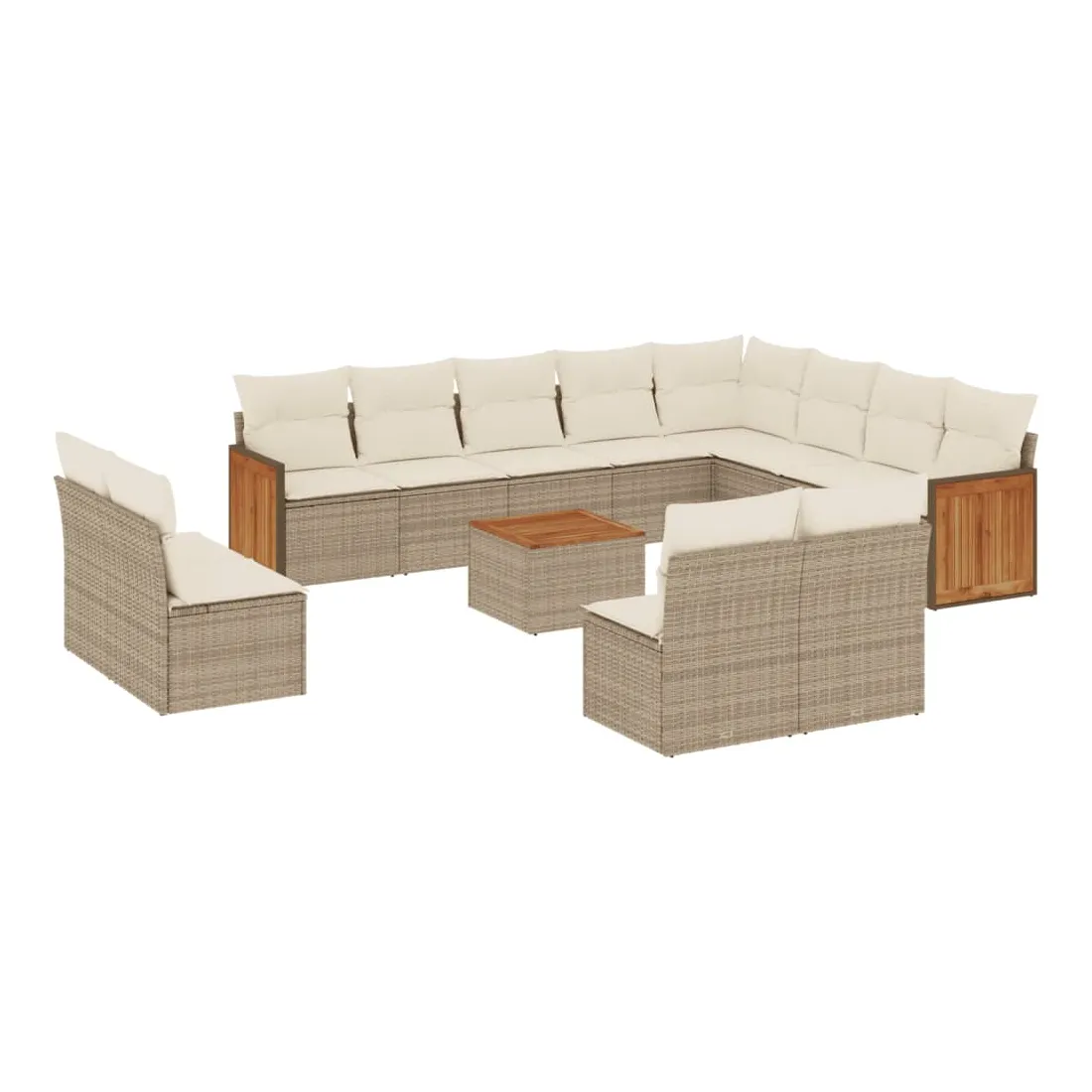 Cet ensemble de canapés de jardin est le complément parfait de votre arrière-cour, terrasse ou patio, offrant un espace confortable et accueillant pour discuter avec la famille et les amis ou simplement se détendre et profiter de l'extérieur. Matériau durable : la résine tressée, également connue sous le nom de poly rotin, est un matériau synthétique solide et nécessitant peu d'entretien qui ressemble au rotin naturel. Il est léger, facile à nettoyer et couramment utilisé pour les meubles d'extérieur en raison de sa durabilité et de ses propriétés de résistance aux intempéries.Fonction de rangement avec sac résistant à l'eau : le mobilier de jardin dispose d'un espace de rangement sous l'assise, complété par un sac résistant à l'eau pour ranger coussins, jouets et autres objets. Le sac intérieur peut être solidement fixé au mobilier d'extérieur grâce à des attaches auto-agrippantes pour plus de stabilité.Dessus stable et facile à nettoyer : cette table de jardin a un dessus en bois d'acacia robuste, durable et facile à nettoyer avec un chiffon humide.Housse amovible et lavable : ces coussins de siège sont dotés de housses amovibles pour un lavage et un entretien faciles.Conception modulaire : cet ensemble de meubles d'extérieur a une conception modulaire, ce qui le rend complètement flexible et facile à déplacer, afin que vous puissiez créer un agencement de meubles d'extérieur personnalisé. Bon à savoir :Pour que vos meubles d'extérieur restent beaux, nous vous recommandons de les protéger avec une housse imperméable.