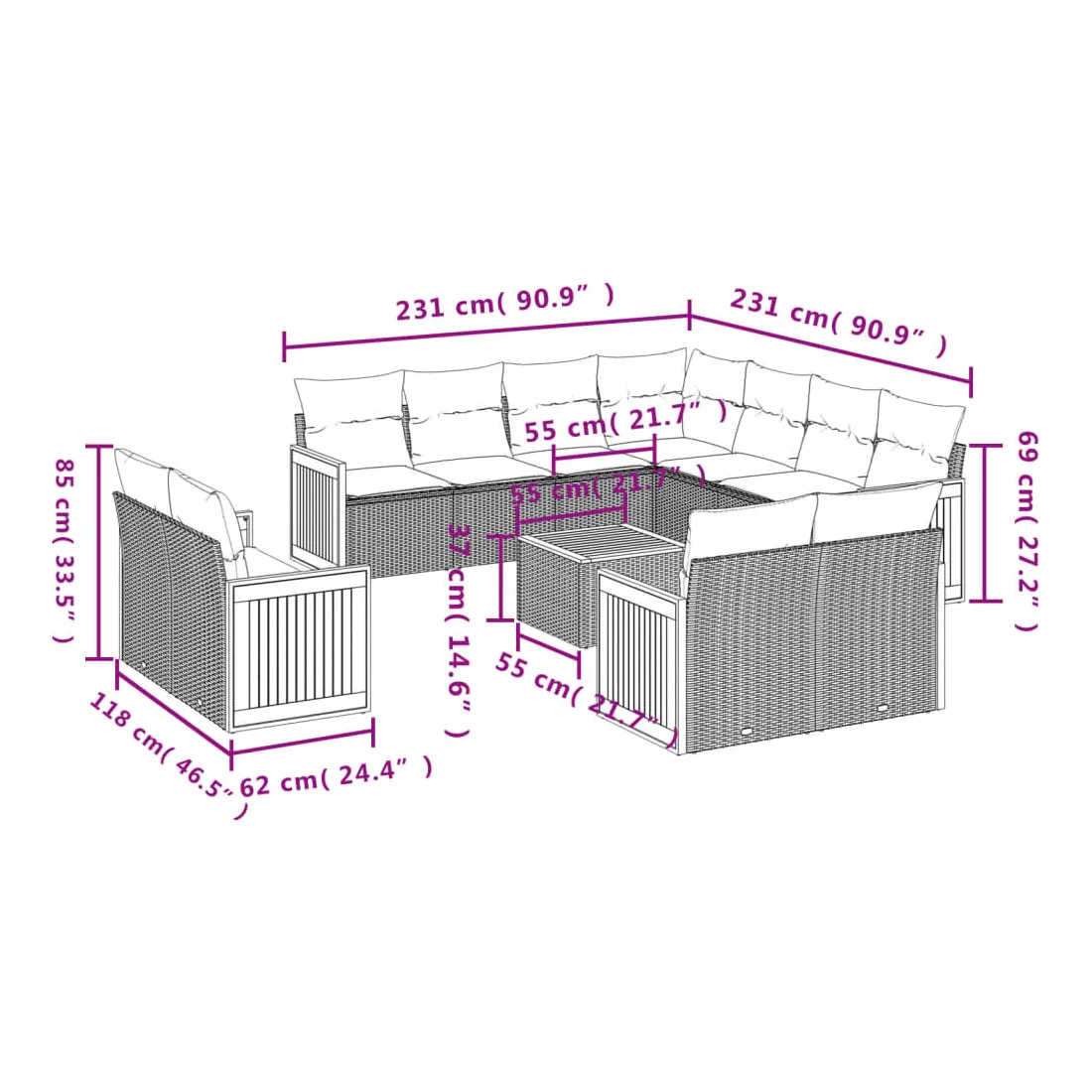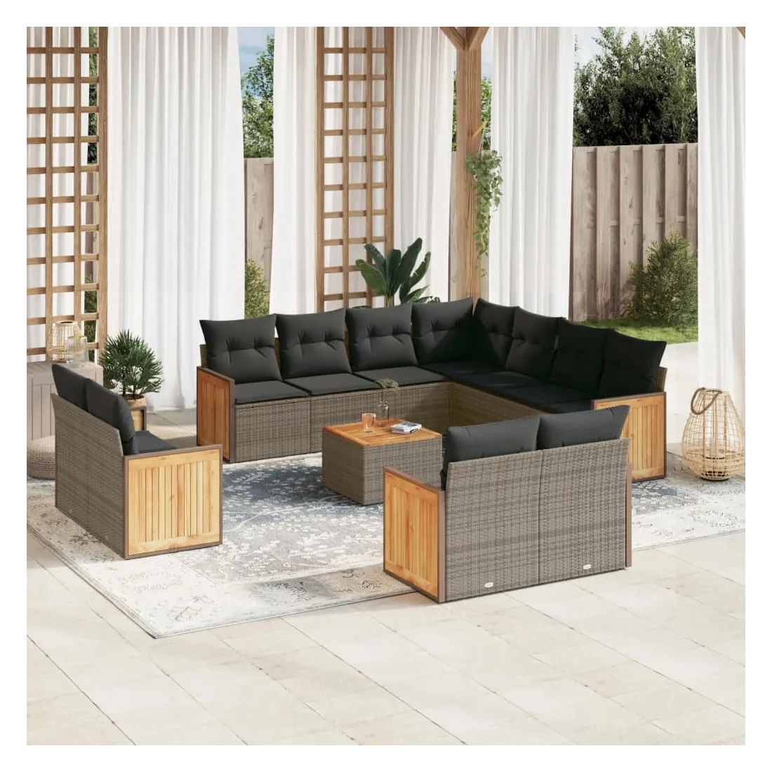 Cet ensemble de canapés de jardin est le complément parfait de votre arrière-cour, terrasse ou patio, offrant un espace confortable et accueillant pour discuter avec la famille et les amis ou simplement se détendre et profiter de l'extérieur. Matériau durable : la résine tressée, également connue sous le nom de poly rotin, est un matériau synthétique solide et nécessitant peu d'entretien qui ressemble au rotin naturel. Il est léger, facile à nettoyer et couramment utilisé pour les meubles d'extérieur en raison de sa durabilité et de ses propriétés de résistance aux intempéries.Fonction de rangement avec sac résistant à l'eau : le mobilier de jardin dispose d'un espace de rangement sous l'assise, complété par un sac résistant à l'eau pour ranger coussins, jouets et autres objets. Le sac intérieur peut être solidement fixé au mobilier d'extérieur grâce à des attaches auto-agrippantes pour plus de stabilité.Dessus stable et facile à nettoyer : cette table de jardin a un dessus en bois d'acacia robuste, durable et facile à nettoyer avec un chiffon humide.Housse amovible et lavable : ces coussins de siège sont dotés de housses amovibles pour un lavage et un entretien faciles.Conception modulaire : cet ensemble de meubles d'extérieur a une conception modulaire, ce qui le rend complètement flexible et facile à déplacer, afin que vous puissiez créer un agencement de meubles d'extérieur personnalisé. Bon à savoir :Pour que vos meubles d'extérieur restent beaux, nous vous recommandons de les protéger avec une housse imperméable.