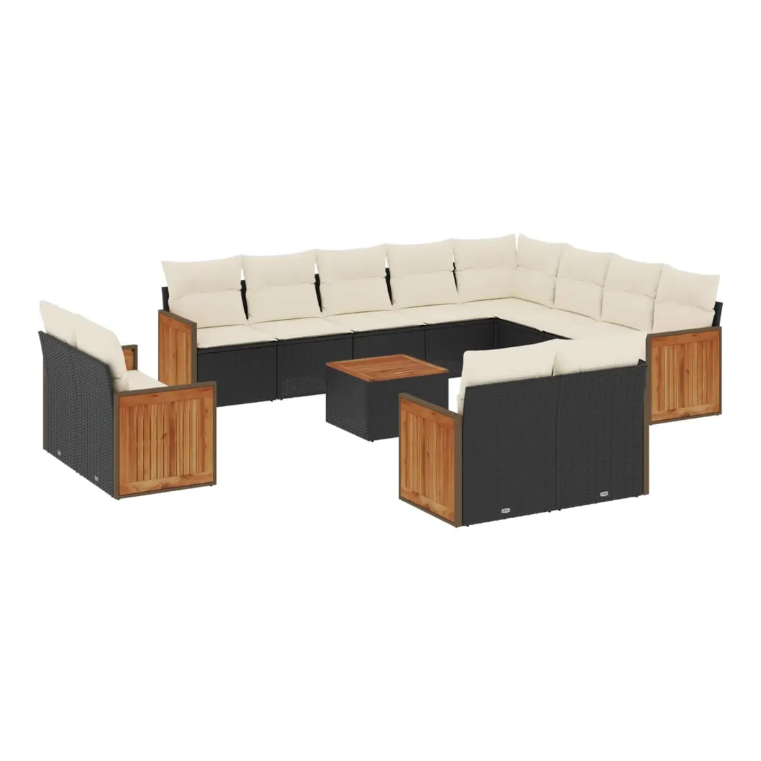 Cet ensemble de canapés de jardin est le complément parfait de votre arrière-cour, terrasse ou patio, offrant un espace confortable et accueillant pour discuter avec la famille et les amis ou simplement se détendre et profiter de l'extérieur. Matériau durable : la résine tressée, également connue sous le nom de poly rotin, est un matériau synthétique solide et nécessitant peu d'entretien qui ressemble au rotin naturel. Il est léger, facile à nettoyer et couramment utilisé pour les meubles d'extérieur en raison de sa durabilité et de ses propriétés de résistance aux intempéries.Fonction de rangement avec sac résistant à l'eau : le mobilier de jardin dispose d'un espace de rangement sous l'assise, complété par un sac résistant à l'eau pour ranger coussins, jouets et autres objets. Le sac intérieur peut être solidement fixé au mobilier d'extérieur grâce à des attaches auto-agrippantes pour plus de stabilité.Dessus stable et facile à nettoyer : cette table de jardin a un dessus en bois d'acacia robuste, durable et facile à nettoyer avec un chiffon humide.Housse amovible et lavable : ces coussins de siège sont dotés de housses amovibles pour un lavage et un entretien faciles.Conception modulaire : cet ensemble de meubles d'extérieur a une conception modulaire, ce qui le rend complètement flexible et facile à déplacer, afin que vous puissiez créer un agencement de meubles d'extérieur personnalisé. Bon à savoir :Pour que vos meubles d'extérieur restent beaux, nous vous recommandons de les protéger avec une housse imperméable.