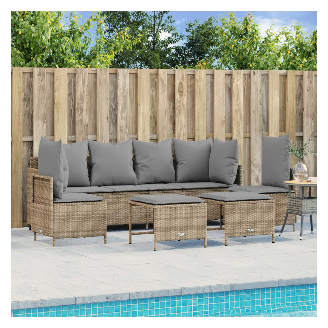 Cet ensemble de canapés de jardin est le complément parfait de votre arrière-cour, terrasse ou patio, offrant un espace confortable et accueillant pour discuter avec la famille et les amis ou simplement se détendre et profiter de l'extérieur. Matériau durable : la résine tressée, également connue sous le nom de poly rotin, est un matériau synthétique solide et nécessitant peu d'entretien qui ressemble au rotin naturel. Il est léger, facile à nettoyer et couramment utilisé pour les meubles d'extérieur en raison de sa durabilité et de ses propriétés de résistance aux intempéries.Dossier et repose-pied réglables : ce meuble d'extérieur est doté d'un dossier à 3 positions réglables et d'un repose-pieds à 2 positions réglables, ce qui vous permet de trouver facilement la position la plus confortable et la plus appropriée pour la détente.Expérience d'assise confortable : ce mobilier d'extérieur, doté de coussins épais, offre une expérience d'assise confortable.Pouf polyvalent : le tabouret est polyvalent, servant de repose-pieds confortable lorsque vous vous prélassez sur le canapé ou de siège supplémentaire dans votre jardin.Housse amovible et lavable : ces coussins de siège sont dotés de housses amovibles pour un lavage et un entretien faciles. Bon à savoir :Pour que vos meubles d'extérieur restent beaux, nous vous recommandons de les protéger avec une housse imperméable.