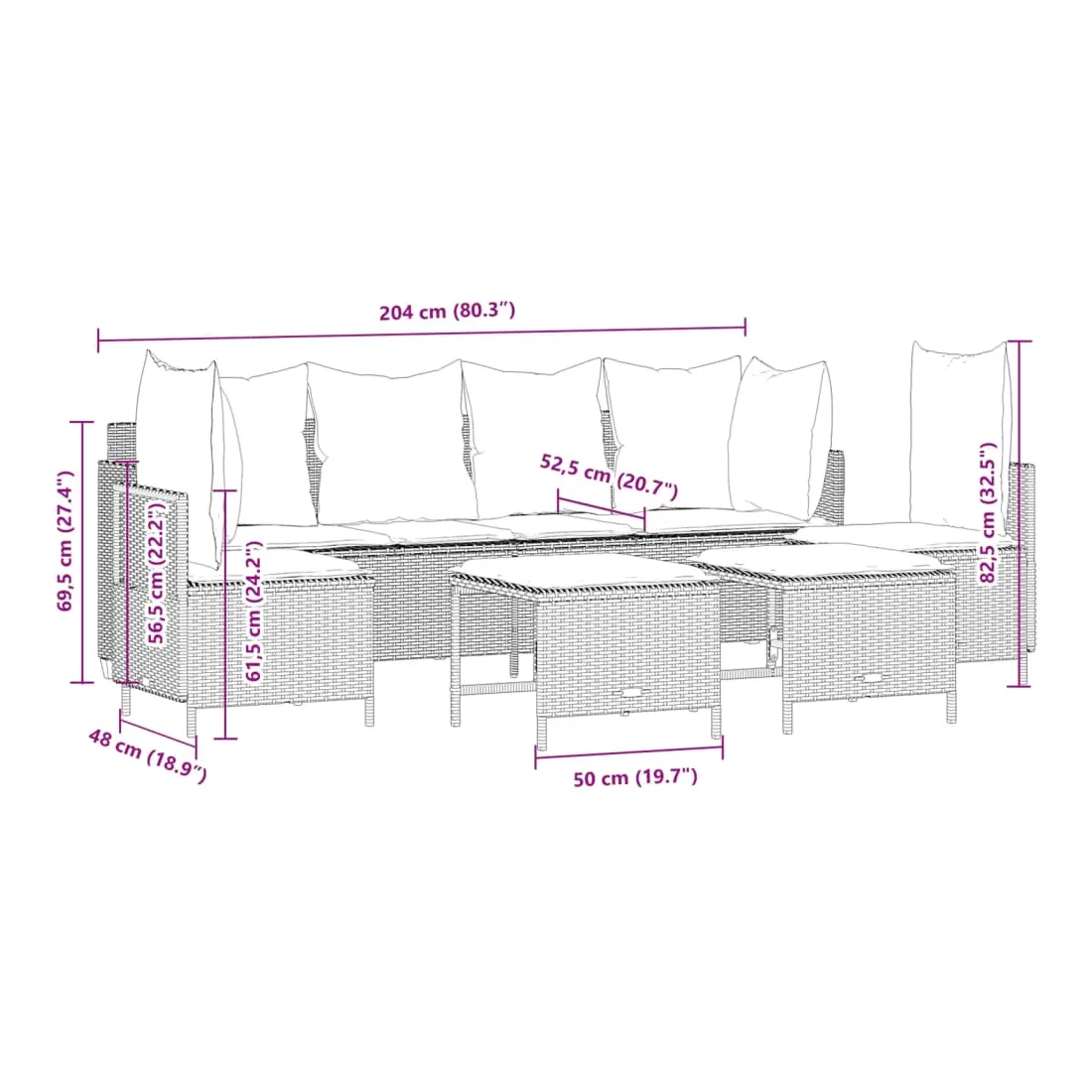 - Dimensions : 204 x 55 x 69,5 cm (l x P x H)