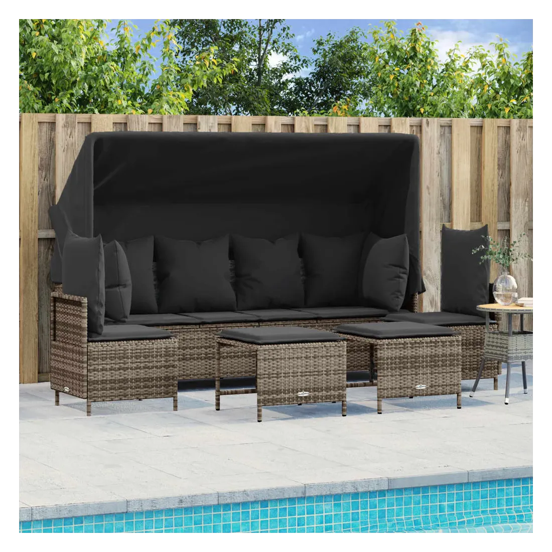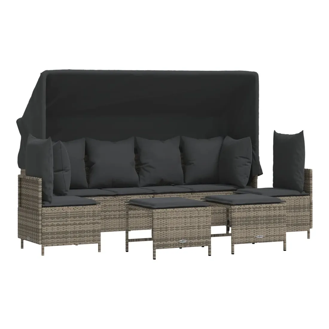 Cet ensemble de canapés de jardin est le complément parfait de votre arrière-cour, terrasse ou patio, offrant un espace confortable et accueillant pour discuter avec la famille et les amis ou simplement se détendre et profiter de l'extérieur. Matériau durable : la résine tressée, également connue sous le nom de poly rotin, est un matériau synthétique solide et nécessitant peu d'entretien qui ressemble au rotin naturel. Il est léger, facile à nettoyer et couramment utilisé pour les meubles d'extérieur en raison de sa durabilité et de ses propriétés de résistance aux intempéries.Dossier et repose-pied réglables : ce meuble d'extérieur est doté d'un dossier à 3 positions réglables et d'un repose-pieds à 2 positions réglables, ce qui vous permet de trouver facilement la position la plus confortable et la plus appropriée pour la détente.Auvent rétractable : grâce à l'auvent rétractable, vous pouvez créer un environnement extérieur frais et agréable tout au long de la journée.Expérience d'assise confortable : ce mobilier d'extérieur, doté de coussins épais, offre une expérience d'assise confortable.Pouf polyvalent : le tabouret est polyvalent, servant de repose-pieds confortable lorsque vous vous prélassez sur le canapé ou de siège supplémentaire dans votre jardin. Bon à savoir :Pour que vos meubles d'extérieur restent beaux, nous vous recommandons de les protéger avec une housse imperméable.