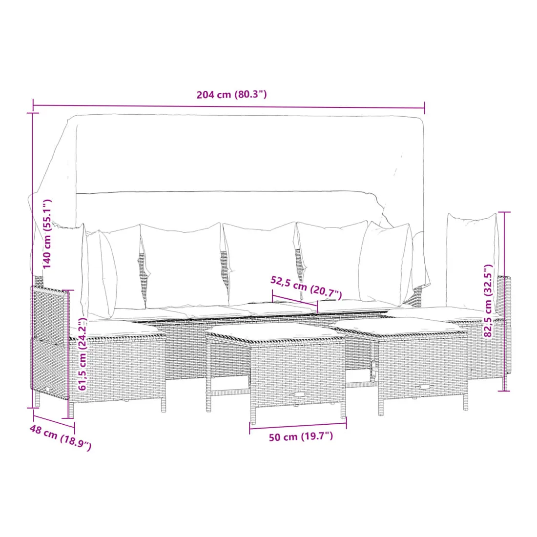 - Dimensions sans auvent : 204 x 55 x 69,5 cm (l x P x H)