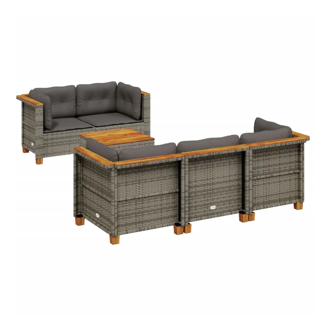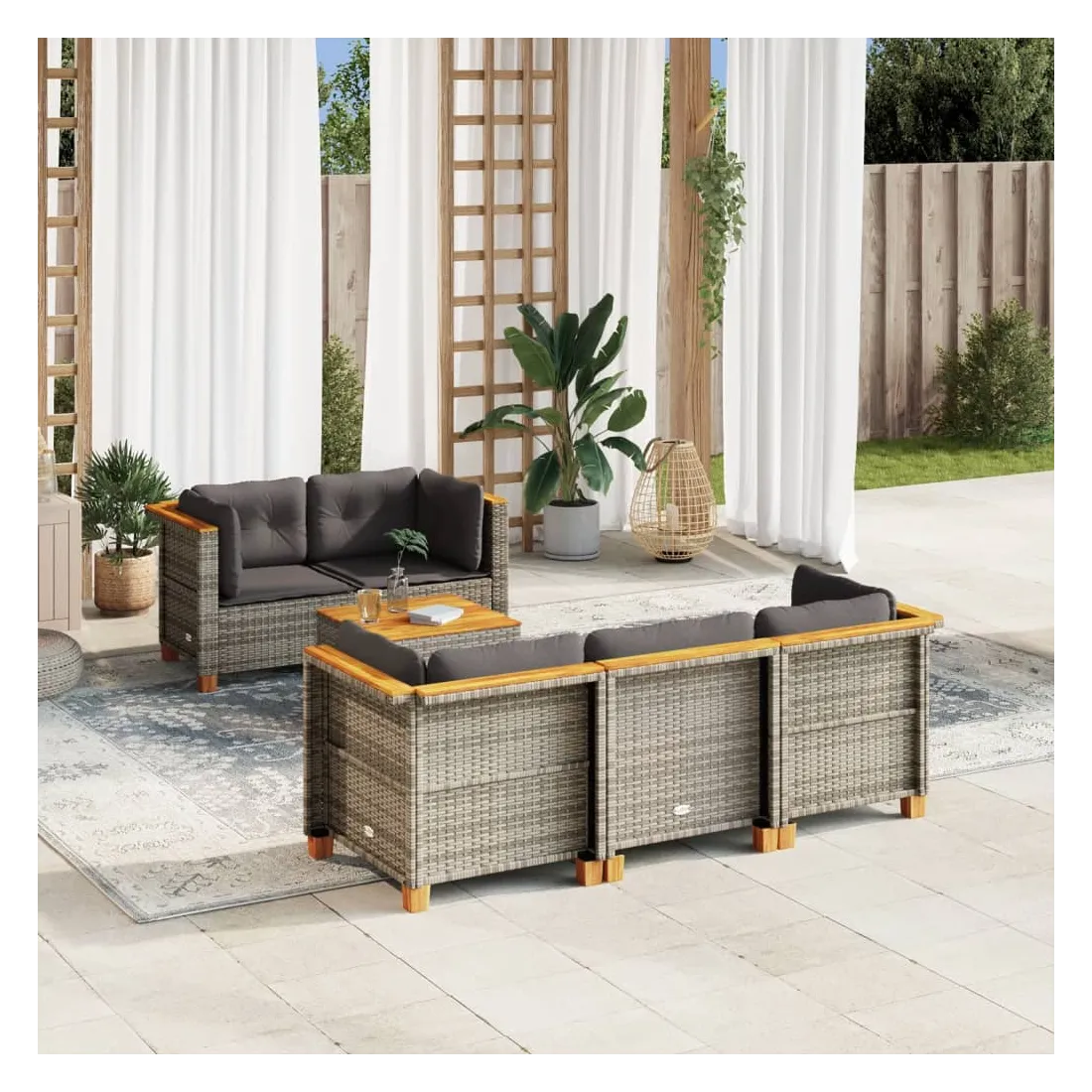 Cet ensemble de canapés de jardin est le complément parfait de votre arrière-cour, terrasse ou patio, offrant un espace confortable et accueillant pour discuter avec la famille et les amis ou simplement se détendre et profiter de l'extérieur. Matériau durable : la résine tressée, également connue sous le nom de poly rotin, est un matériau synthétique solide et nécessitant peu d'entretien qui ressemble au rotin naturel. Il est léger, facile à nettoyer et couramment utilisé pour les meubles d'extérieur en raison de sa durabilité et de ses propriétés de résistance aux intempéries.Expérience d'assise confortable : ce mobilier d'extérieur, doté de coussins épais, offre une expérience d'assise confortable.Housse amovible et lavable : ces coussins de siège sont dotés de housses amovibles pour un lavage et un entretien faciles.Dessus stable et facile à nettoyer : cette table de jardin a un dessus en bois d'acacia robuste, durable et facile à nettoyer avec un chiffon humide.Conception modulaire : cet ensemble de meubles d'extérieur a une conception modulaire, ce qui le rend complètement flexible et facile à déplacer, afin que vous puissiez créer un agencement de meubles d'extérieur personnalisé. Bon à savoir :Pour que vos meubles d'extérieur restent beaux, nous vous recommandons de les protéger avec une housse imperméable.