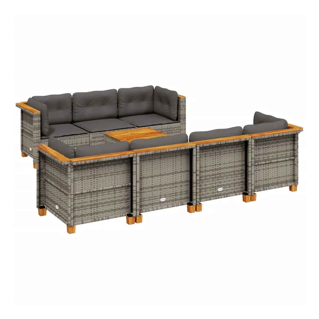 Cet ensemble de canapés de jardin est le complément parfait de votre arrière-cour, terrasse ou patio, offrant un espace confortable et accueillant pour discuter avec la famille et les amis ou simplement se détendre et profiter de l'extérieur. Matériau durable : la résine tressée, également connue sous le nom de poly rotin, est un matériau synthétique solide et nécessitant peu d'entretien qui ressemble au rotin naturel. Il est léger, facile à nettoyer et couramment utilisé pour les meubles d'extérieur en raison de sa durabilité et de ses propriétés de résistance aux intempéries.Expérience d'assise confortable : ce mobilier d'extérieur, doté de coussins épais, offre une expérience d'assise confortable.Housse amovible et lavable : ces coussins de siège sont dotés de housses amovibles pour un lavage et un entretien faciles.Dessus stable et facile à nettoyer : cette table de jardin a un dessus en bois d'acacia robuste, durable et facile à nettoyer avec un chiffon humide.Conception modulaire : cet ensemble de meubles d'extérieur a une conception modulaire, ce qui le rend complètement flexible et facile à déplacer, afin que vous puissiez créer un agencement de meubles d'extérieur personnalisé. Bon à savoir :Pour que vos meubles d'extérieur restent beaux, nous vous recommandons de les protéger avec une housse imperméable.