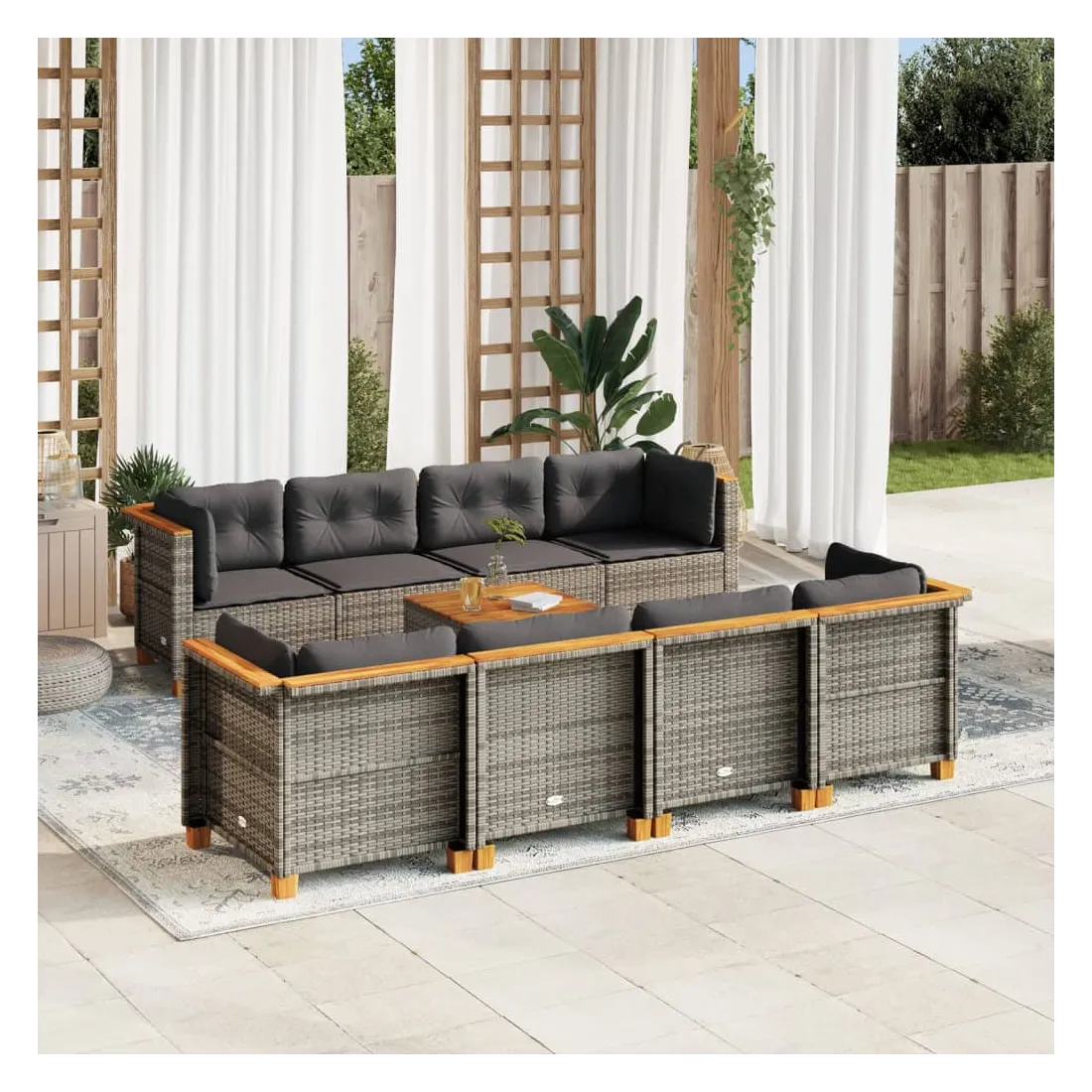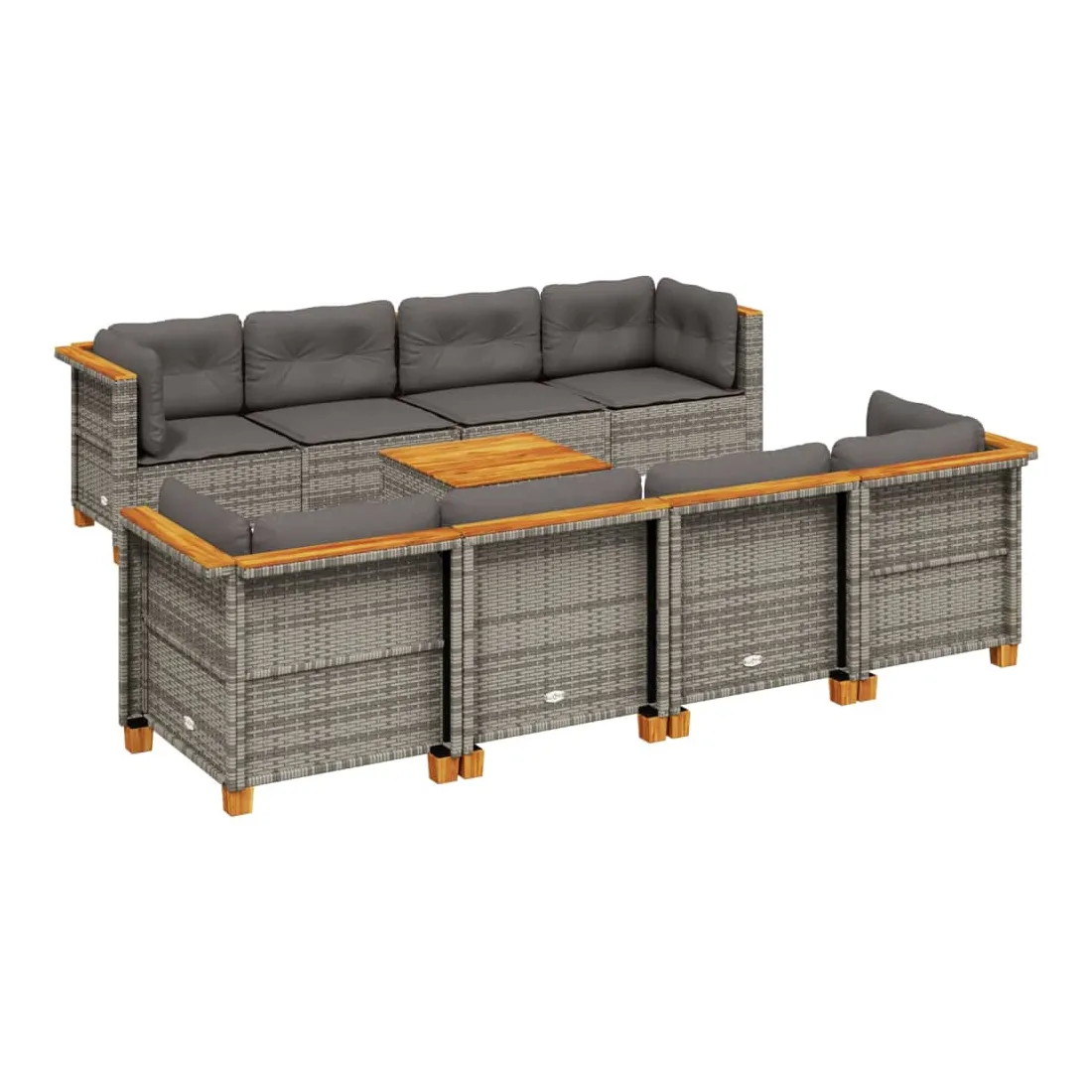 Salon de jardin 9 pcs avec coussins gris résine tressée
