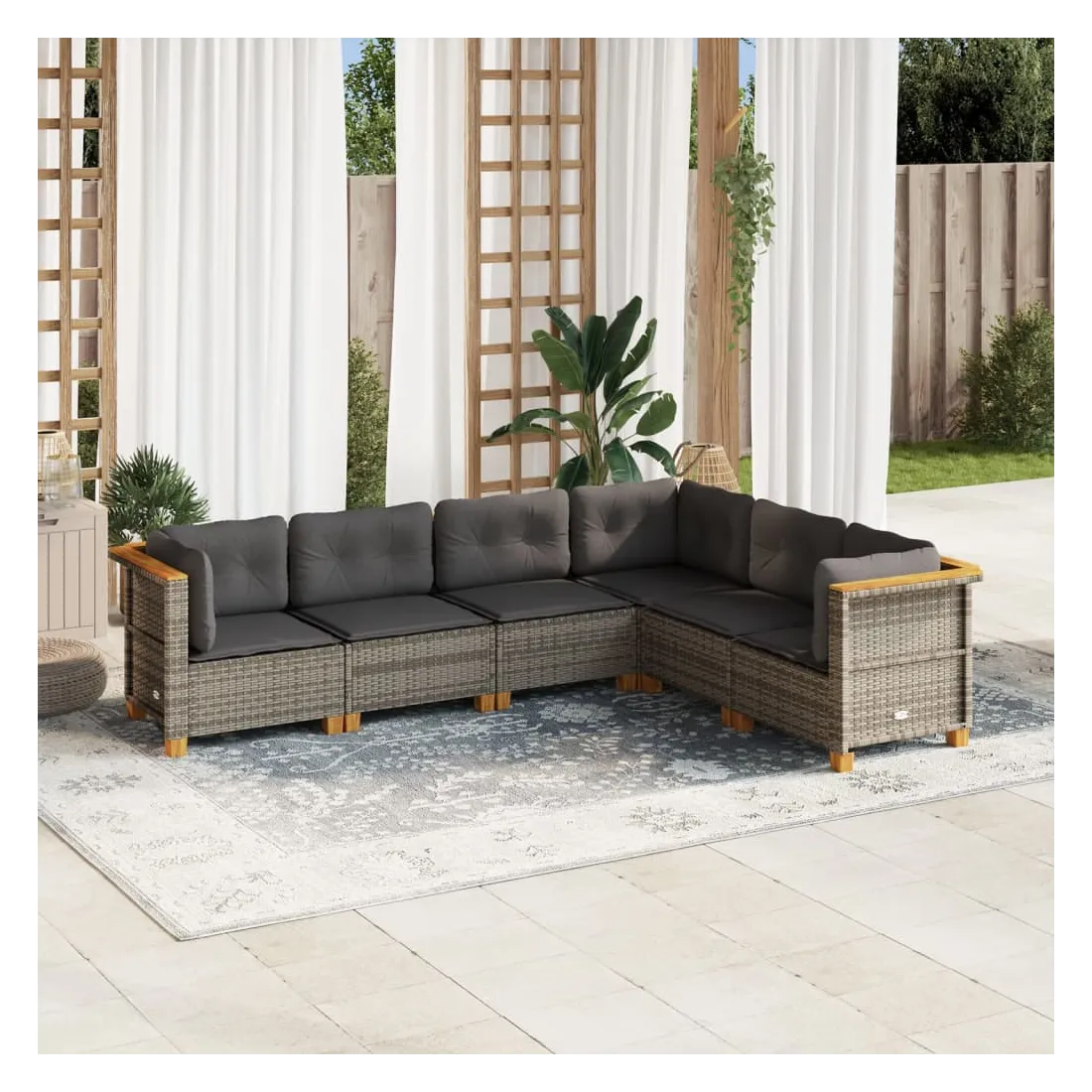Cet ensemble de canapés de jardin est le complément parfait de votre arrière-cour, terrasse ou patio, offrant un espace confortable et accueillant pour discuter avec la famille et les amis ou simplement se détendre et profiter de l'extérieur. Matériau durable : la résine tressée, également connue sous le nom de poly rotin, est un matériau synthétique solide et nécessitant peu d'entretien qui ressemble au rotin naturel. Il est léger, facile à nettoyer et couramment utilisé pour les meubles d'extérieur en raison de sa durabilité et de ses propriétés de résistance aux intempéries.Expérience d'assise confortable : ce mobilier d'extérieur, doté de coussins épais, offre une expérience d'assise confortable.Housse amovible et lavable : ces coussins de siège sont dotés de housses amovibles pour un lavage et un entretien faciles.Conception modulaire : cet ensemble de meubles d'extérieur a une conception modulaire, ce qui le rend complètement flexible et facile à déplacer, afin que vous puissiez créer un agencement de meubles d'extérieur personnalisé. Bon à savoir :Pour que vos meubles d'extérieur restent beaux, nous vous recommandons de les protéger avec une housse imperméable.