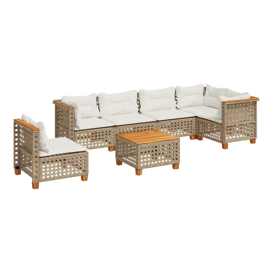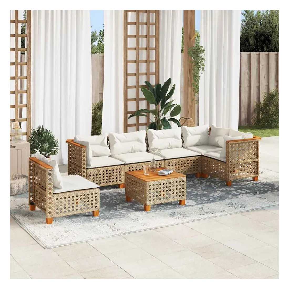 Cet ensemble de canapés de jardin est le complément parfait de votre arrière-cour, terrasse ou patio, offrant un espace confortable et accueillant pour discuter avec la famille et les amis ou simplement se détendre et profiter de l'extérieur. Matériau durable : la résine tressée, également connue sous le nom de poly rotin, est un matériau synthétique solide et nécessitant peu d'entretien qui ressemble au rotin naturel. Elle est légère, facile à nettoyer et couramment utilisée pour les meubles d'extérieur en raison de sa durabilité et de ses propriétés de résistance aux intempéries.Expérience d'assise confortable : ce mobilier d'extérieur, doté de coussins épais, offre une expérience d'assise confortable.Housse amovible et lavable : ces coussins de siège sont dotés de housses amovibles pour un lavage et un entretien faciles.Dessus stable et facile à nettoyer : cette table de jardin a un dessus en bois d'acacia robuste, durable et facile à nettoyer avec un chiffon humide.Conception modulaire : cet ensemble de meubles d'extérieur a une conception modulaire, ce qui le rend complètement flexible et facile à déplacer, afin que vous puissiez créer un agencement de meubles d'extérieur personnalisé. Bon à savoir :Pour que vos meubles d'extérieur restent beaux, nous vous recommandons de les protéger avec une housse imperméable.