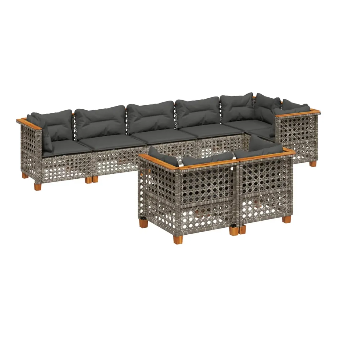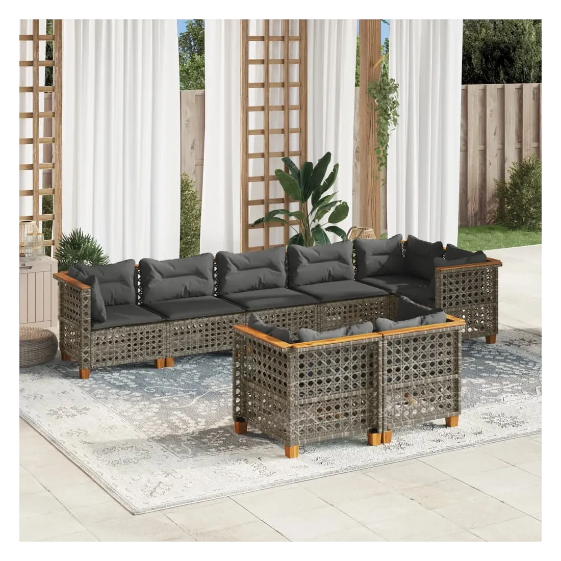 Cet ensemble de canapés de jardin est le complément parfait de votre arrière-cour, terrasse ou patio, offrant un espace confortable et accueillant pour discuter avec la famille et les amis ou simplement se détendre et profiter de l'extérieur. Matériau durable : la résine tressée, également connue sous le nom de poly rotin, est un matériau synthétique solide et nécessitant peu d'entretien qui ressemble au rotin naturel. Il est léger, facile à nettoyer et couramment utilisé pour les meubles d'extérieur en raison de sa durabilité et de ses propriétés de résistance aux intempéries.Expérience d'assise confortable : ce mobilier d'extérieur, doté de coussins épais, offre une expérience d'assise confortable.Housse amovible et lavable : ces coussins de siège sont dotés de housses amovibles pour un lavage et un entretien faciles.Conception modulaire : cet ensemble de meubles d'extérieur a une conception modulaire, ce qui le rend complètement flexible et facile à déplacer, afin que vous puissiez créer un agencement de meubles d'extérieur personnalisé. Bon à savoir :Pour que vos meubles d'extérieur restent beaux, nous vous recommandons de les protéger avec une housse imperméable.