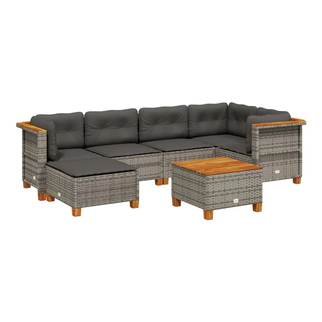 Cet ensemble de canapés de jardin est le complément parfait de votre arrière-cour, terrasse ou patio, offrant un espace confortable et accueillant pour discuter avec la famille et les amis ou simplement se détendre et profiter de l'extérieur. Matériau durable : la résine tressée, également connue sous le nom de poly rotin, est un matériau synthétique solide et nécessitant peu d'entretien qui ressemble au rotin naturel. Il est léger, facile à nettoyer et couramment utilisé pour les meubles d'extérieur en raison de sa durabilité et de ses propriétés de résistance aux intempéries.Expérience d'assise confortable : ce mobilier d'extérieur, doté de coussins épais, offre une expérience d'assise confortable.Housse amovible et lavable : ces coussins de siège sont dotés de housses amovibles pour un lavage et un entretien faciles.Dessus stable et facile à nettoyer : cette table de jardin a un dessus en bois d'acacia robuste, durable et facile à nettoyer avec un chiffon humide.Conception modulaire : cet ensemble de meubles d'extérieur a une conception modulaire, ce qui le rend complètement flexible et facile à déplacer, afin que vous puissiez créer un agencement de meubles d'extérieur personnalisé. Bon à savoir :Pour que vos meubles d'extérieur restent beaux, nous vous recommandons de les protéger avec une housse imperméable.