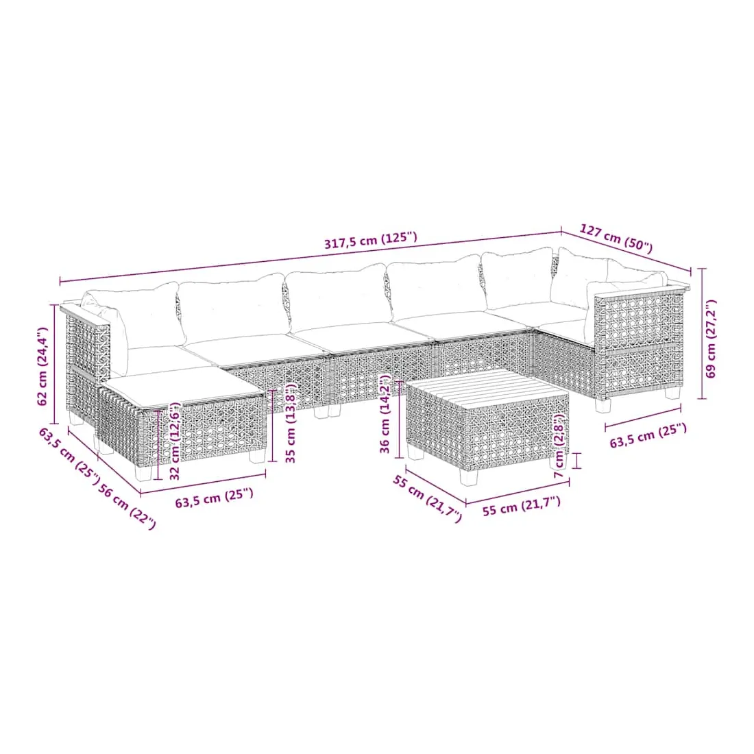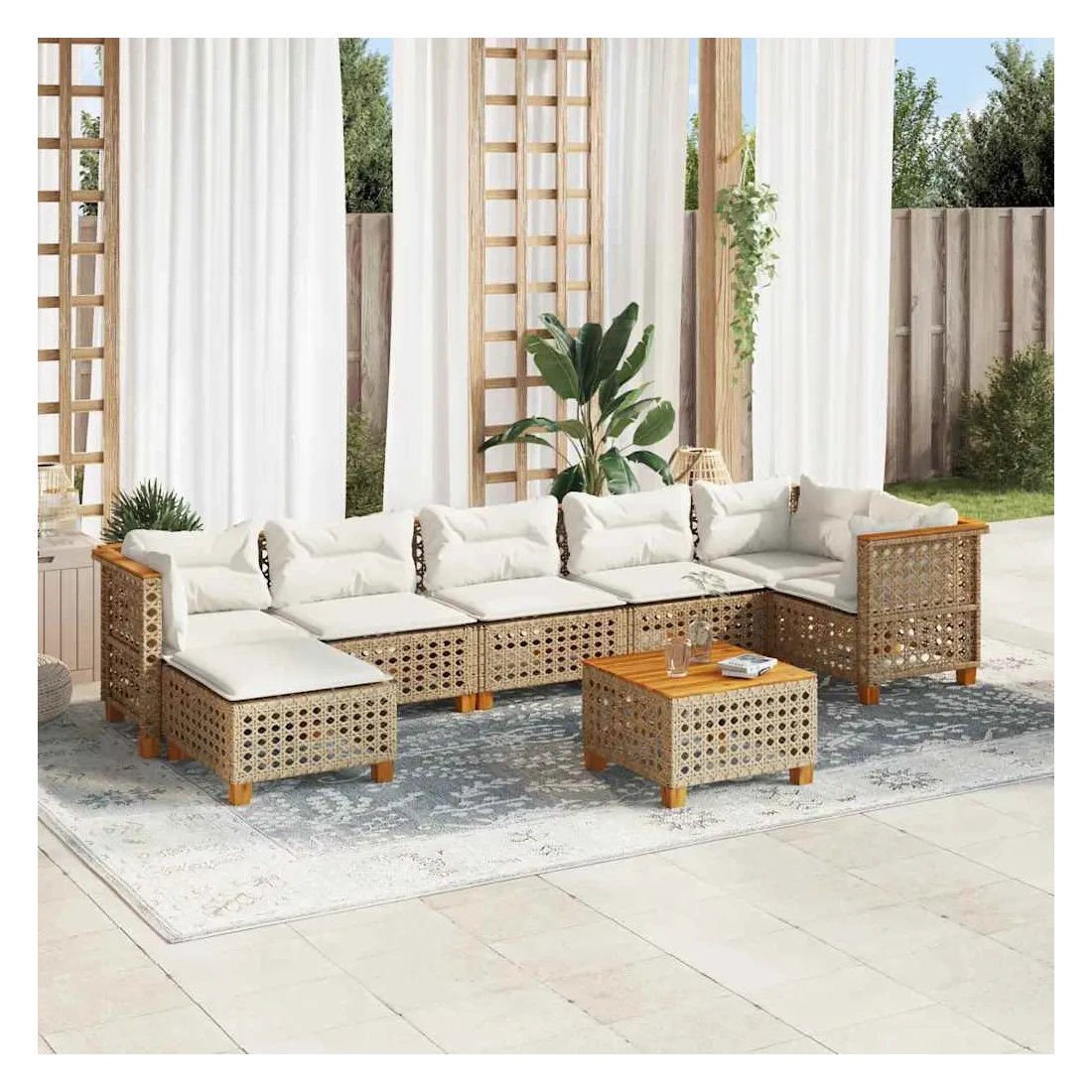 Cet ensemble de canapés de jardin est le complément parfait de votre arrière-cour, terrasse ou patio, offrant un espace confortable et accueillant pour discuter avec la famille et les amis ou simplement se détendre et profiter de l'extérieur. Matériau durable : la résine tressée, également connue sous le nom de poly rotin, est un matériau synthétique solide et nécessitant peu d'entretien qui ressemble au rotin naturel. Elle est légère, facile à nettoyer et couramment utilisée pour les meubles d'extérieur en raison de sa durabilité et de ses propriétés de résistance aux intempéries.Expérience d'assise confortable : ce mobilier d'extérieur, doté de coussins épais, offre une expérience d'assise confortable.Housse amovible et lavable : ces coussins de siège sont dotés de housses amovibles pour un lavage et un entretien faciles.Dessus stable et facile à nettoyer : cette table de jardin a un dessus en bois d'acacia robuste, durable et facile à nettoyer avec un chiffon humide.Conception modulaire : cet ensemble de meubles d'extérieur a une conception modulaire, ce qui le rend complètement flexible et facile à déplacer, afin que vous puissiez créer un agencement de meubles d'extérieur personnalisé. Bon à savoir :Pour que vos meubles d'extérieur restent beaux, nous vous recommandons de les protéger avec une housse imperméable.