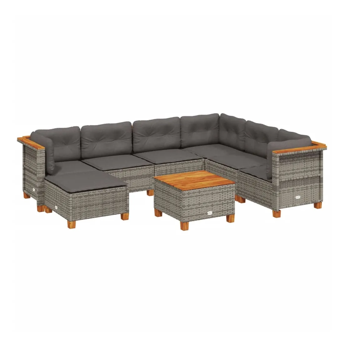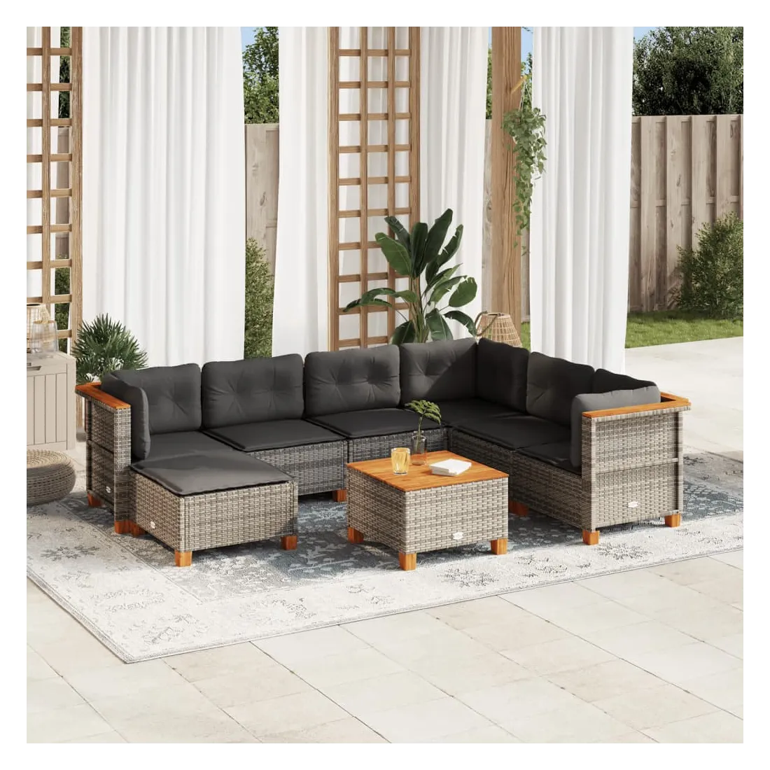 Cet ensemble de canapés de jardin est le complément parfait de votre arrière-cour, terrasse ou patio, offrant un espace confortable et accueillant pour discuter avec la famille et les amis ou simplement se détendre et profiter de l'extérieur. Matériau durable : la résine tressée, également connue sous le nom de poly rotin, est un matériau synthétique solide et nécessitant peu d'entretien qui ressemble au rotin naturel. Il est léger, facile à nettoyer et couramment utilisé pour les meubles d'extérieur en raison de sa durabilité et de ses propriétés de résistance aux intempéries.Expérience d'assise confortable : ce mobilier d'extérieur, doté de coussins épais, offre une expérience d'assise confortable.Housse amovible et lavable : ces coussins de siège sont dotés de housses amovibles pour un lavage et un entretien faciles.Dessus stable et facile à nettoyer : cette table de jardin a un dessus en bois d'acacia robuste, durable et facile à nettoyer avec un chiffon humide.Conception modulaire : cet ensemble de meubles d'extérieur a une conception modulaire, ce qui le rend complètement flexible et facile à déplacer, afin que vous puissiez créer un agencement de meubles d'extérieur personnalisé. Bon à savoir :Pour que vos meubles d'extérieur restent beaux, nous vous recommandons de les protéger avec une housse imperméable.