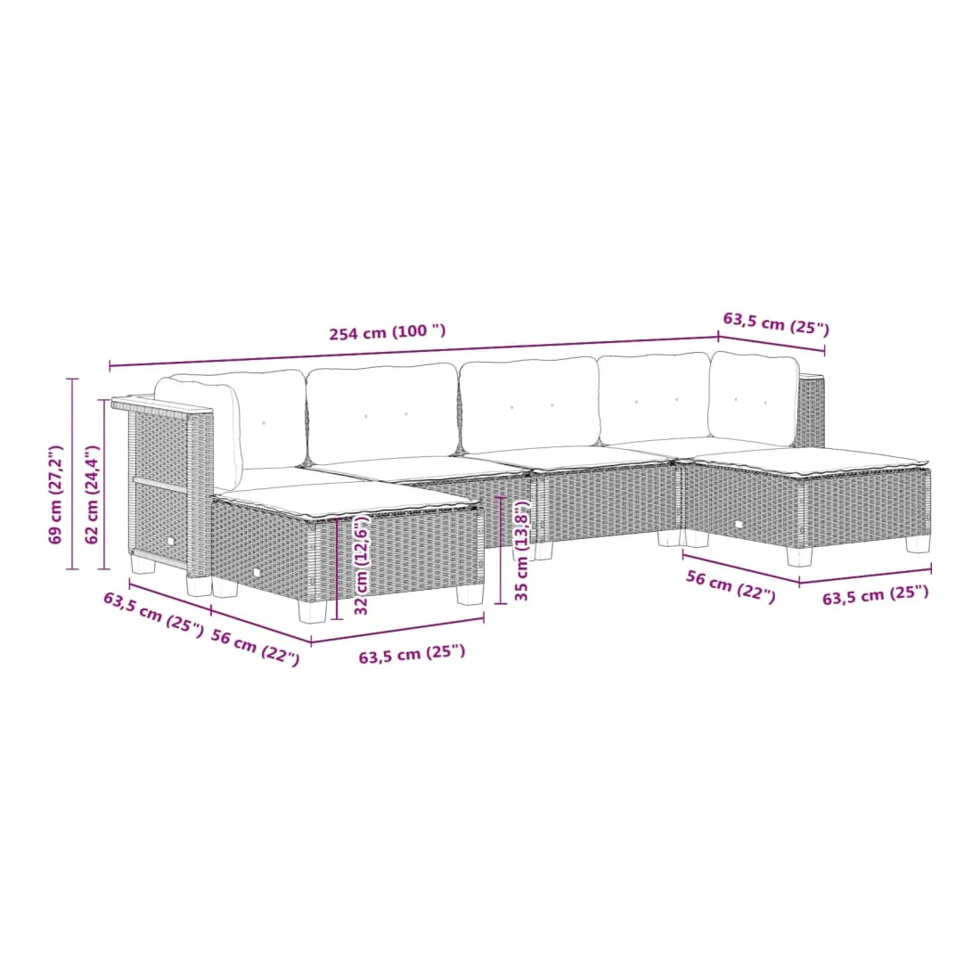- Dimensions du coussin de dossier (angle) : 63,5 x 35 x 10 cm (L x l x é)