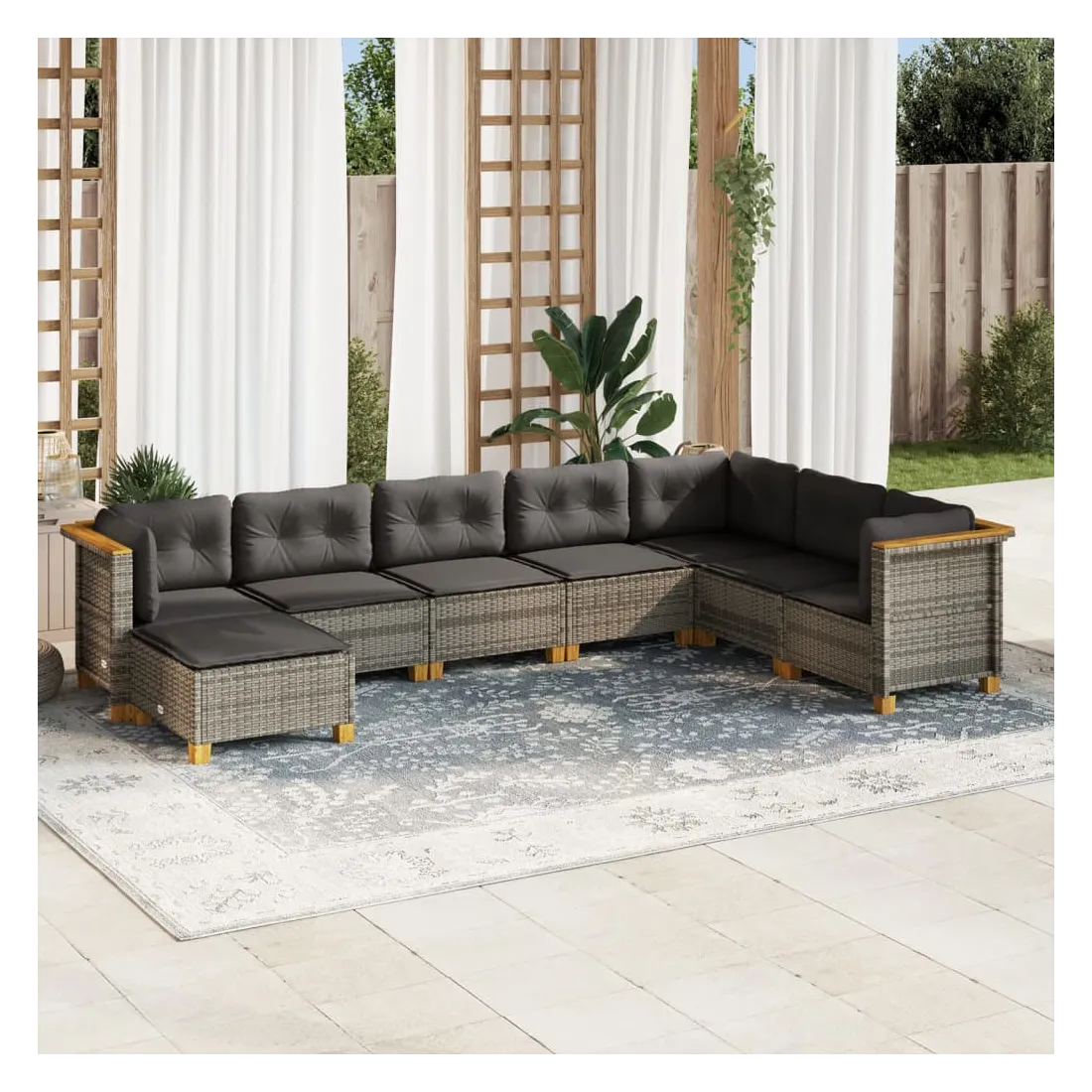 Cet ensemble de canapés de jardin est le complément parfait de votre arrière-cour, terrasse ou patio, offrant un espace confortable et accueillant pour discuter avec la famille et les amis ou simplement se détendre et profiter de l'extérieur. Matériau durable : la résine tressée, également connue sous le nom de poly rotin, est un matériau synthétique solide et nécessitant peu d'entretien qui ressemble au rotin naturel. Il est léger, facile à nettoyer et couramment utilisé pour les meubles d'extérieur en raison de sa durabilité et de ses propriétés de résistance aux intempéries.Expérience d'assise confortable : ce mobilier d'extérieur, doté de coussins épais, offre une expérience d'assise confortable.Housse amovible et lavable : ces coussins de siège sont dotés de housses amovibles pour un lavage et un entretien faciles.Conception modulaire : cet ensemble de meubles d'extérieur a une conception modulaire, ce qui le rend complètement flexible et facile à déplacer, afin que vous puissiez créer un agencement de meubles d'extérieur personnalisé. Bon à savoir :Pour que vos meubles d'extérieur restent beaux, nous vous recommandons de les protéger avec une housse imperméable.