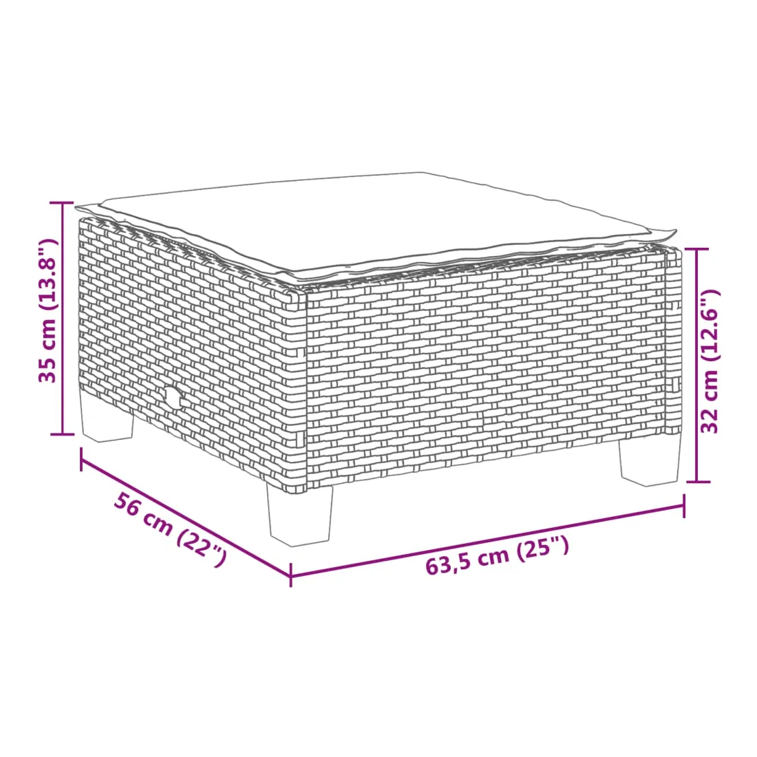 - Dimensions du coussin d’assise (centre/repose-pieds) : 63,5 x 56,5 x 3 cm (l x P x é)
