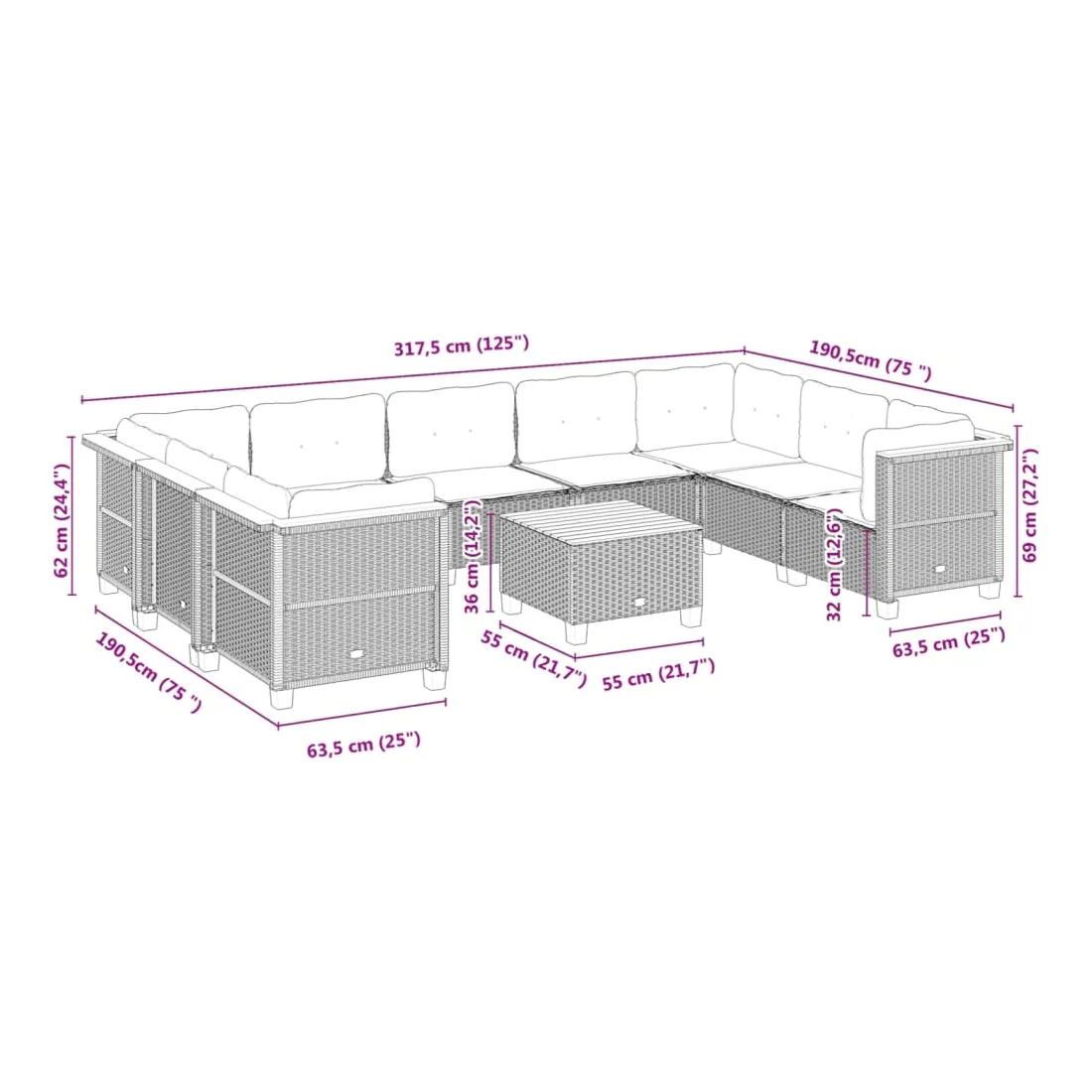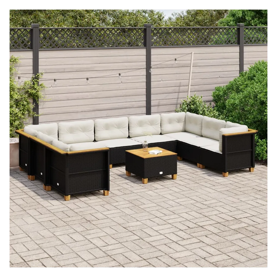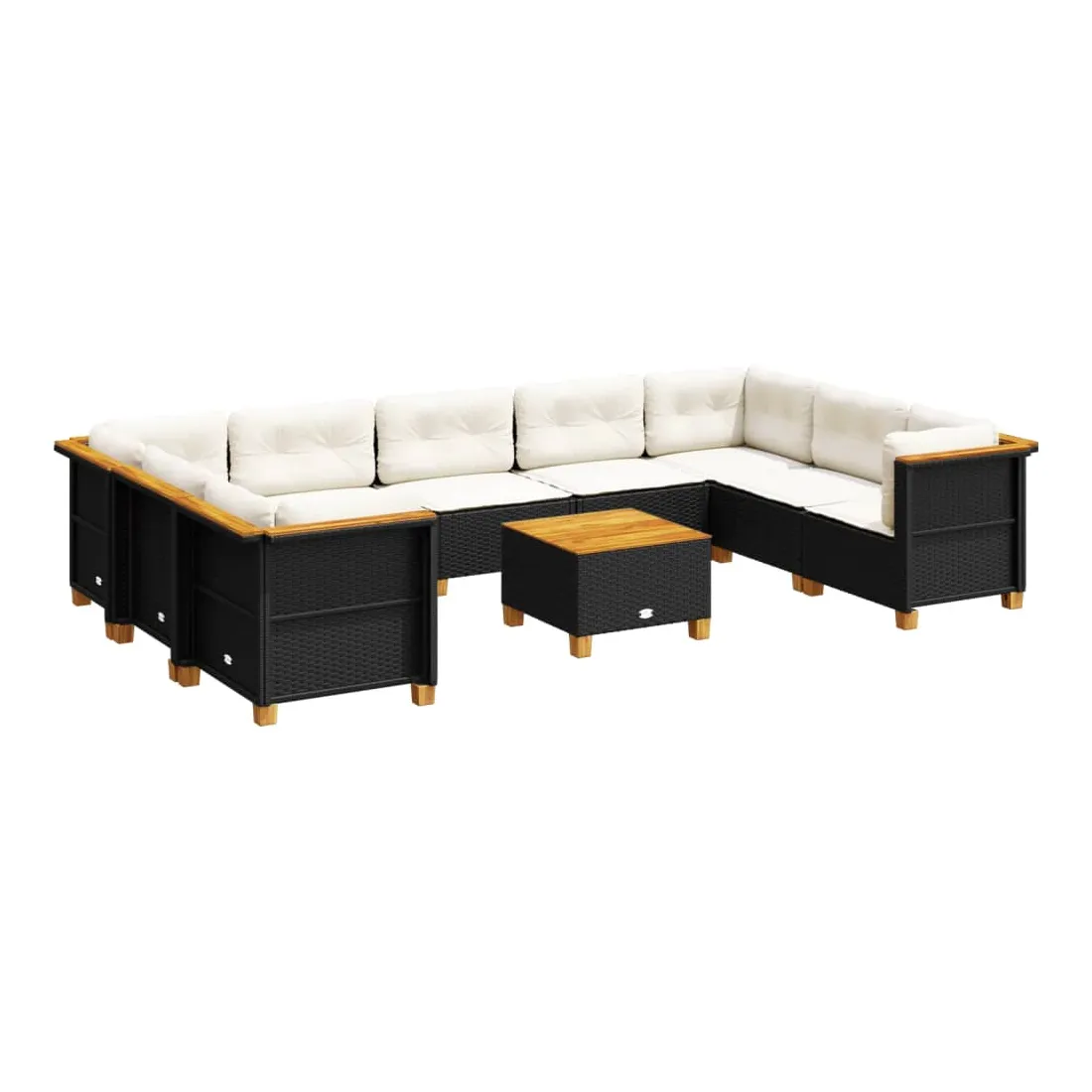 Salon de jardin 10 pcs avec coussins noir résine tressée