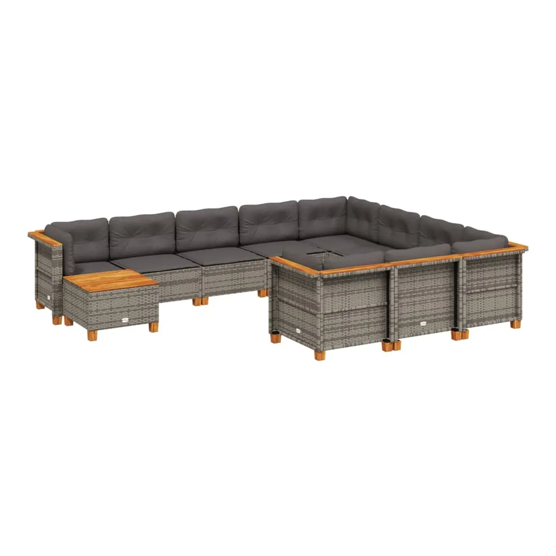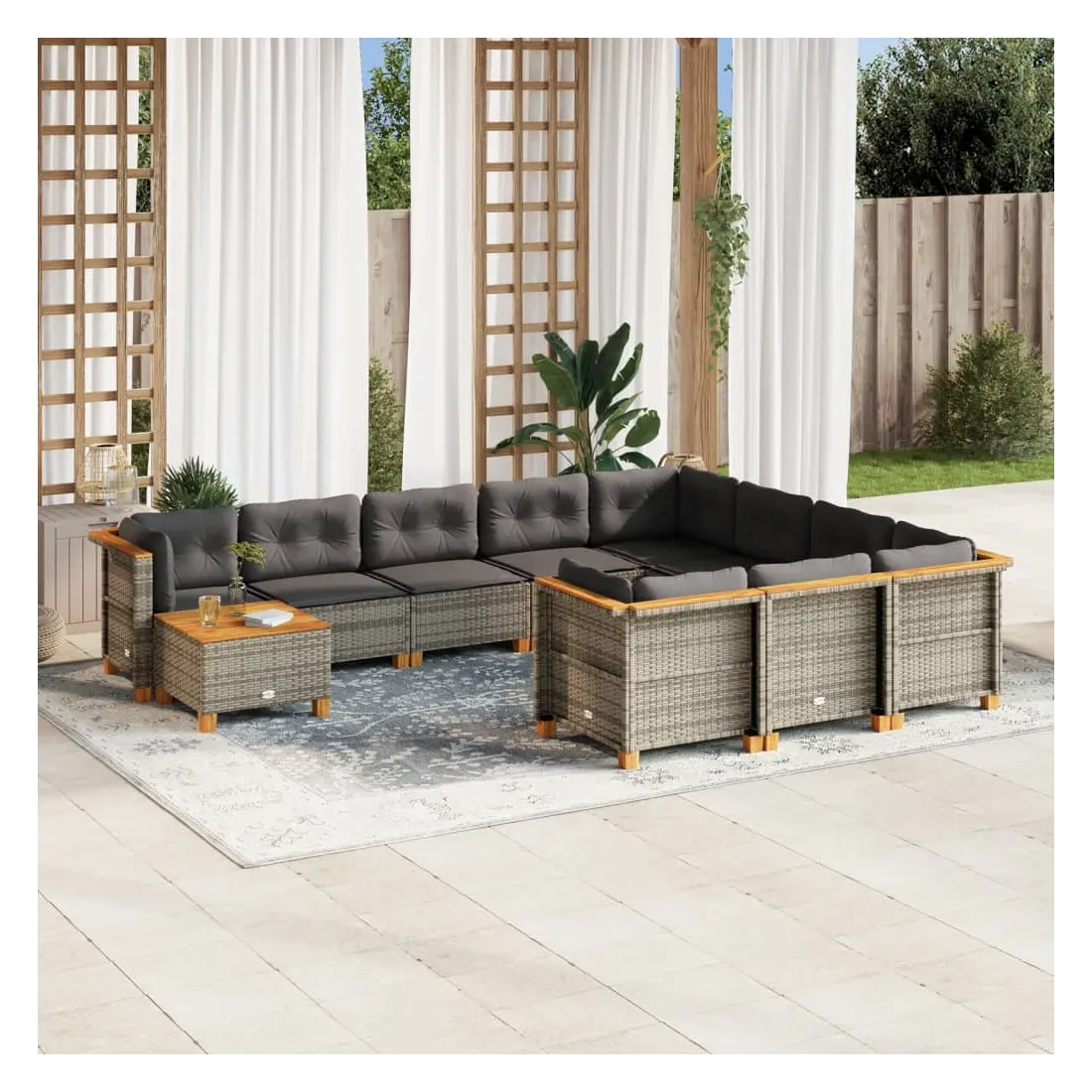 Salon de jardin 11 pcs avec coussins gris résine tressée