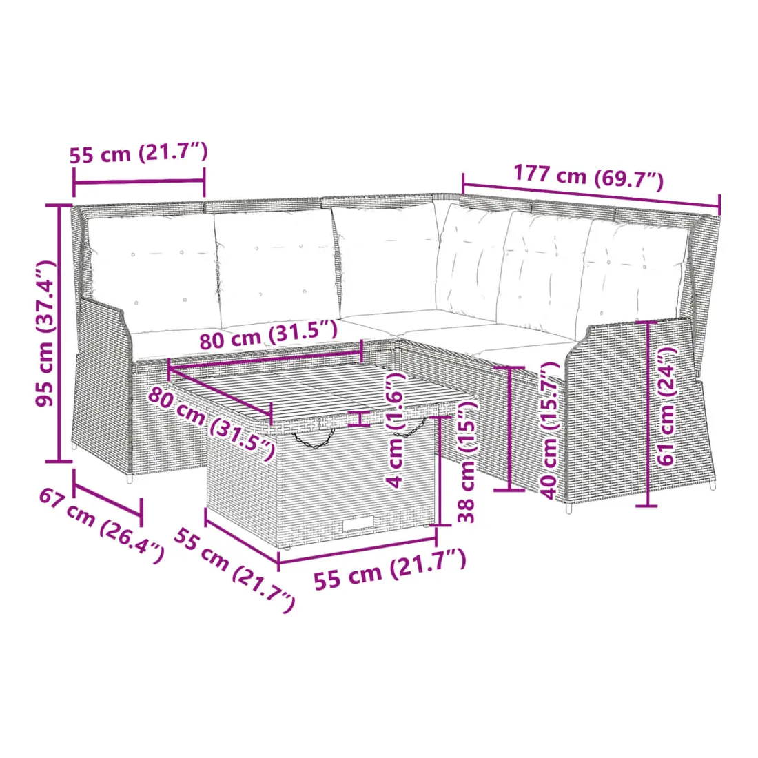 Cet ensemble de salon de jardin est le complément parfait de votre arrière-cour, terrasse ou patio, offrant un espace confortable et accueillant pour discuter avec la famille et les amis ou simplement se détendre et profiter de l'extérieur. Matériau durable : la résine tressée, également connue sous le nom de poly rotin, est un matériau synthétique solide et nécessitant peu d'entretien qui ressemble au rotin naturel. Elle est légère, facile à nettoyer et couramment utilisée pour les meubles d'extérieur en raison de sa durabilité et de ses propriétés de résistance aux intempéries.Dossier réglable : vous pouvez régler le dossier dans n'importe quelle position en tirant sur la poignée et le remettre rapidement dans sa position initiale.Housse amovible et lavable : ces coussins de siège sont dotés de housses amovibles pour un lavage et un entretien faciles.Expérience d'assise confortable : ce mobilier d'extérieur, doté de coussins épais, offre une expérience d'assise confortable.Dessus stable et facile à nettoyer : cette table de jardin a un dessus en bois d'acacia robuste, durable et facile à nettoyer avec un chiffon humide.Cadre robuste et stable : le cadre en acier enduit de poudre est solide, stable, durable et résistant à la corrosion et aux intempéries, ce qui garantit des performances durables. Bon à savoir :Pour que vos meubles d'extérieur restent beaux, nous vous recommandons de les protéger avec une housse imperméable.