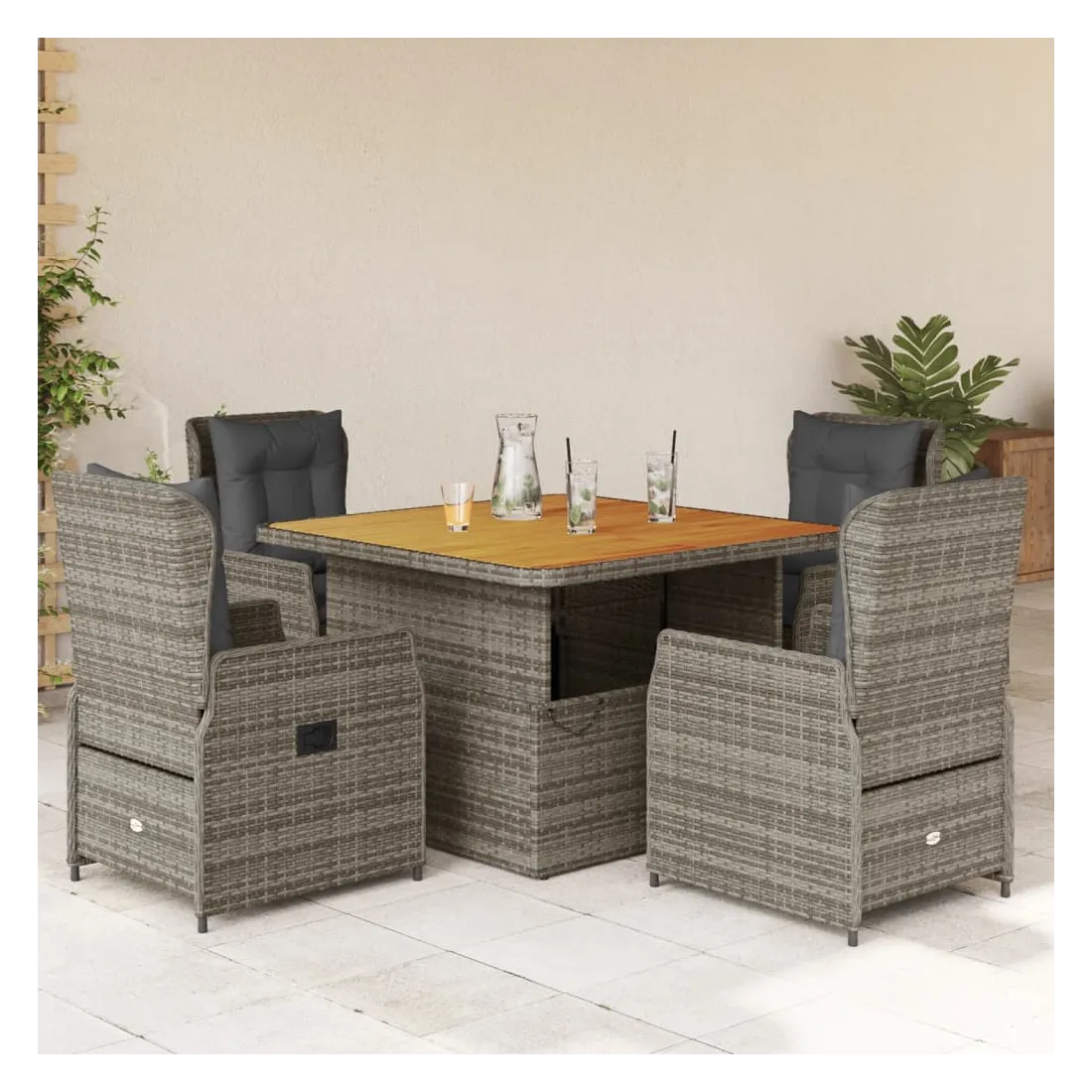 Ensemble à manger de jardin 5 pcs coussins gris résine tressée