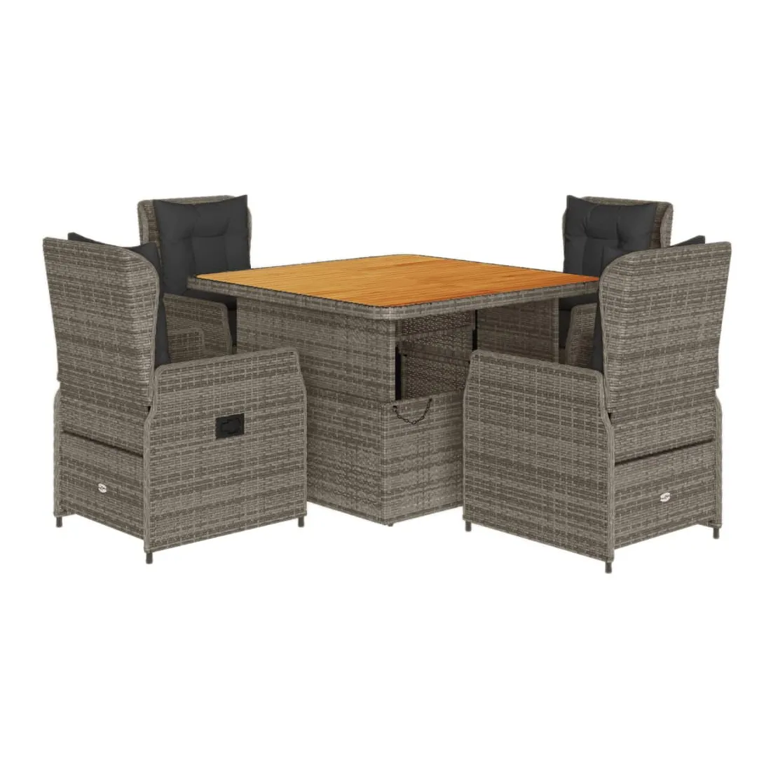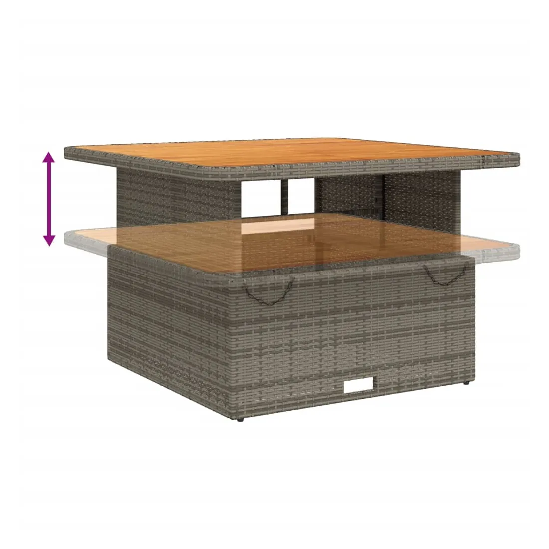 vidaXLCet ensemble de salle à manger de jardin est un excellent choix pour les repas en plein air ou pour vous détendre dans le jardin, dans l'arrière-cour ou sur la terrasse. Matériau durable : la résine tressée, également connue sous le nom de poly rotin, est un matériau synthétique solide et nécessitant peu d'entretien qui ressemble au rotin naturel. Il est léger, facile à nettoyer et couramment utilisé pour les meubles d'extérieur en raison de sa durabilité et de ses propriétés de résistance aux intempéries.Dossier réglable : ce siège de jardin est doté d'une poignée. Vous pouvez régler le dossier dans n'importe quelle position en tirant sur la poignée et le remettre rapidement dans sa position initiale.Housse amovible et lavable : le coussin de siège est doté d'une housse amovible pour un lavage et un entretien faciles.Dessus de table réglable : le dessus de table peut être soulevé pour rendre la table plus haute, ce qui transforme la table d'extérieur d'une table basse à une table de salle à manger. Elle est parfaite pour recevoir des invités ou prendre des repas à l'extérieur.Dessus stable et facile à nettoyer : cette table de jardin a un dessus en bois d'acacia robuste, durable et facile à nettoyer avec un chiffon humide. Bon à savoir :Pour que vos meubles d'extérieur restent beaux, nous vous recommandons de les protéger avec une housse imperméable.