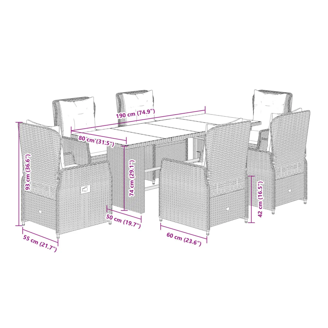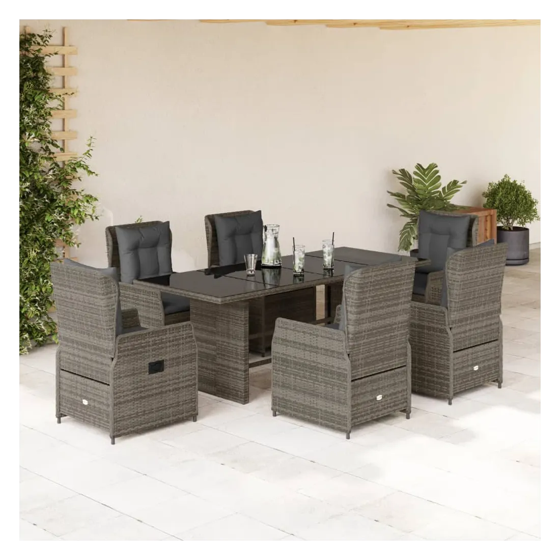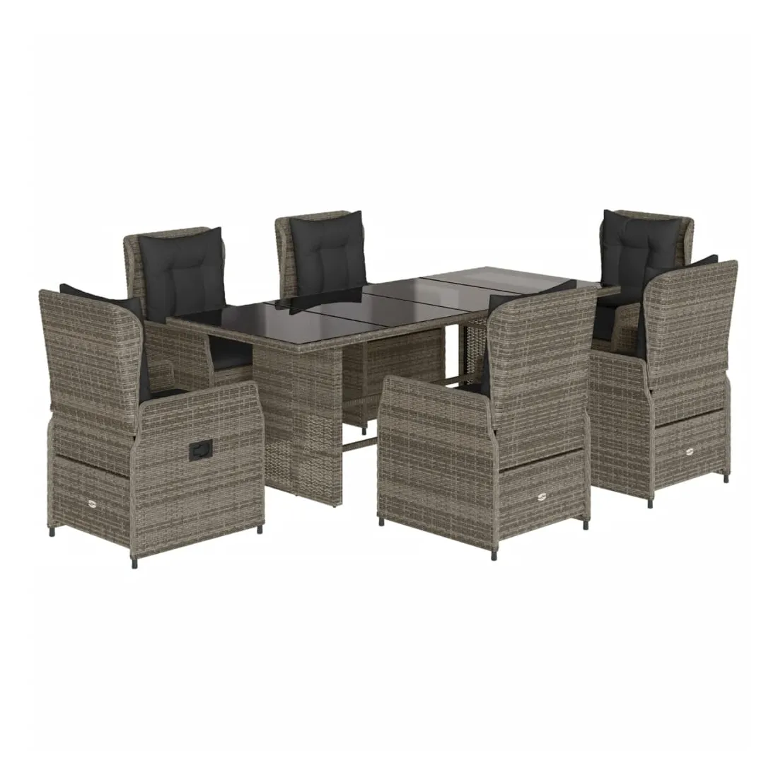 Ensemble à manger de jardin et coussins 7 pcs gris rotin