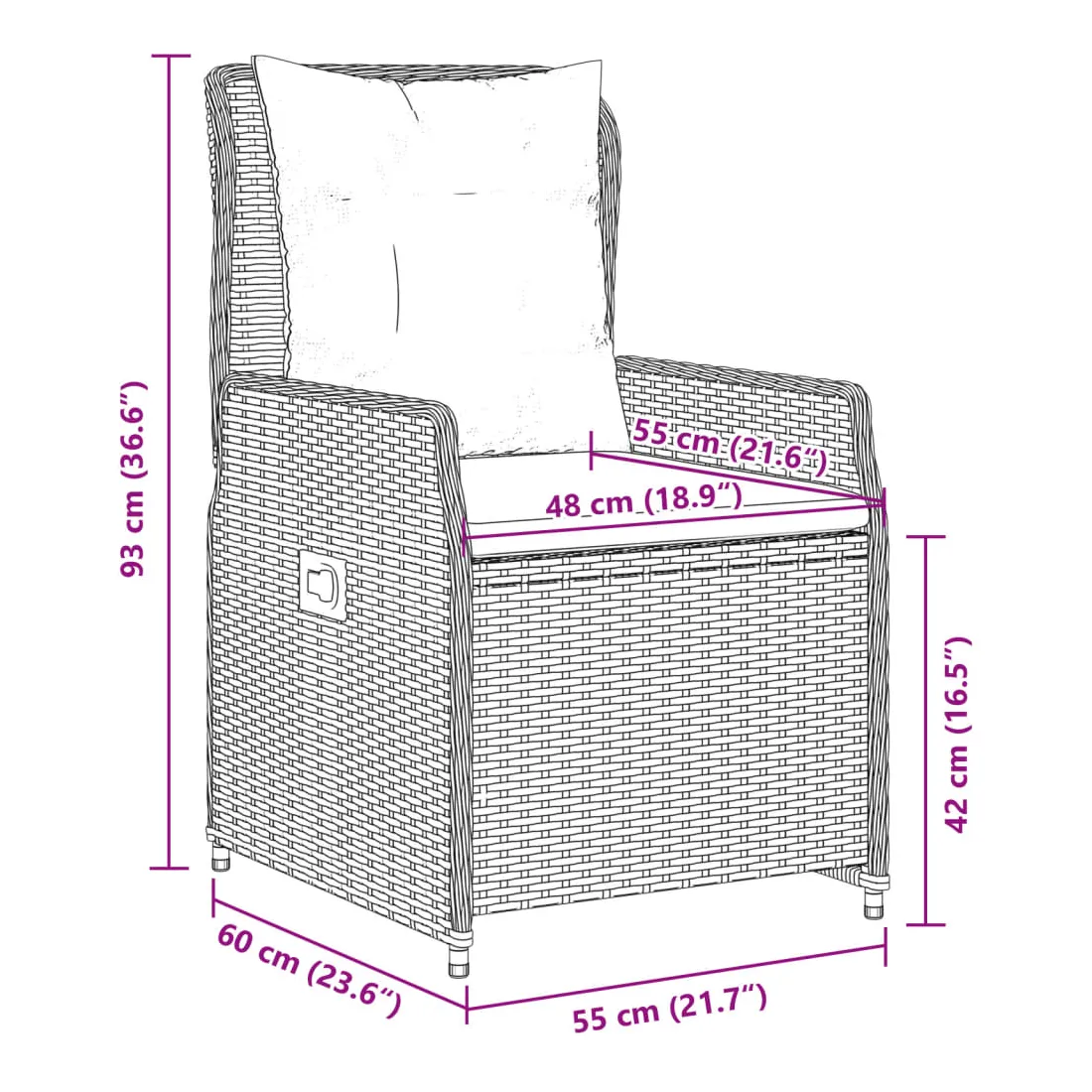 vidaXLCet ensemble de salle à manger de jardin est un excellent choix pour les repas en plein air ou pour vous détendre dans le jardin, dans l'arrière-cour ou sur la terrasse. Matériau durable : la résine tressée, également connue sous le nom de poly rotin, est un matériau synthétique solide et nécessitant peu d'entretien qui ressemble au rotin naturel. Il est léger, facile à nettoyer et couramment utilisé pour les meubles d'extérieur en raison de sa durabilité et de ses propriétés de résistance aux intempéries.Dossier réglable : ce siège de jardin est doté d'une poignée. Vous pouvez régler le dossier dans n'importe quelle position en tirant sur la poignée et le remettre rapidement dans sa position initiale.Expérience d'assise confortable : ce mobilier d'extérieur, doté de coussins épais, offre une expérience d'assise confortable.Housse amovible et lavable : le coussin de siège est doté d'une housse amovible pour un lavage et un entretien faciles.Dessus en verre : le dessus de la table d'extérieur est fabriqué en verre trempé solide et durable, ce qui le rend facile à nettoyer avec un chiffon humide et ajoute une touche d'élégance à votre espace extérieur. Bon à savoir :Pour que vos meubles d'extérieur restent beaux, nous vous recommandons de les protéger avec une housse imperméable.