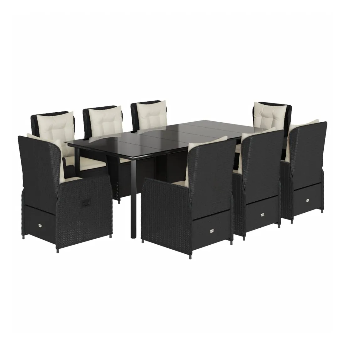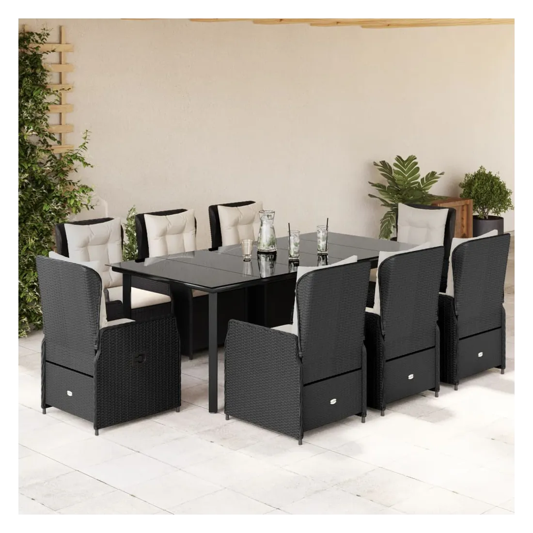Cet ensemble de salle à manger de jardin est un excellent choix pour les repas en plein air ou pour vous détendre dans le jardin, dans l'arrière-cour ou sur la terrasse. Matériau durable : la résine tressée, également connue sous le nom de poly rotin, est un matériau synthétique solide et nécessitant peu d'entretien qui ressemble au rotin naturel. Il est léger, facile à nettoyer et couramment utilisé pour les meubles d'extérieur en raison de sa durabilité et de ses propriétés de résistance aux intempéries.Dossier réglable : ce siège de jardin est doté d'une poignée. Vous pouvez régler le dossier dans n'importe quelle position en tirant sur la poignée et le remettre rapidement dans sa position initiale.Expérience d'assise confortable : ce mobilier d'extérieur, doté de coussins épais, offre une expérience d'assise confortable.Housse amovible et lavable : le coussin de siège est doté d'une housse amovible pour un lavage et un entretien faciles.Dessus en verre : le dessus de la table d'extérieur est fabriqué en verre trempé solide et durable, ce qui le rend facile à nettoyer avec un chiffon humide et ajoute une touche d'élégance à votre espace extérieur. Bon à savoir :Pour que vos meubles d'extérieur restent beaux, nous vous recommandons de les protéger avec une housse imperméable.