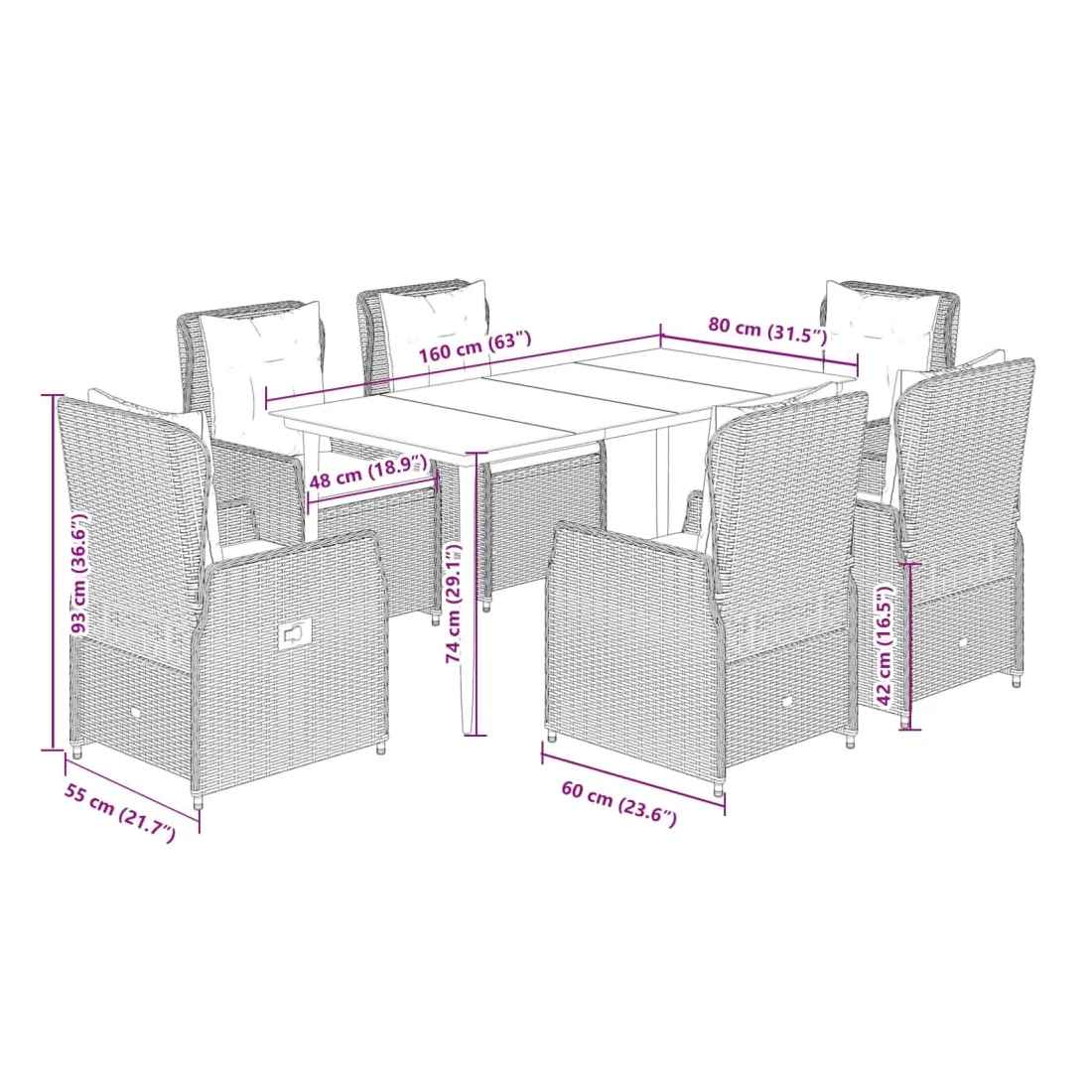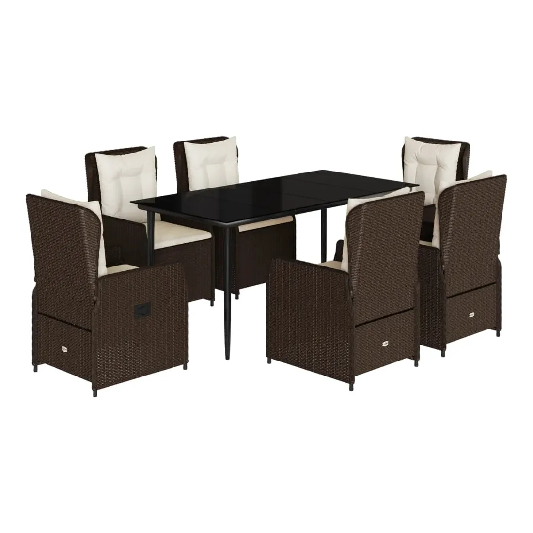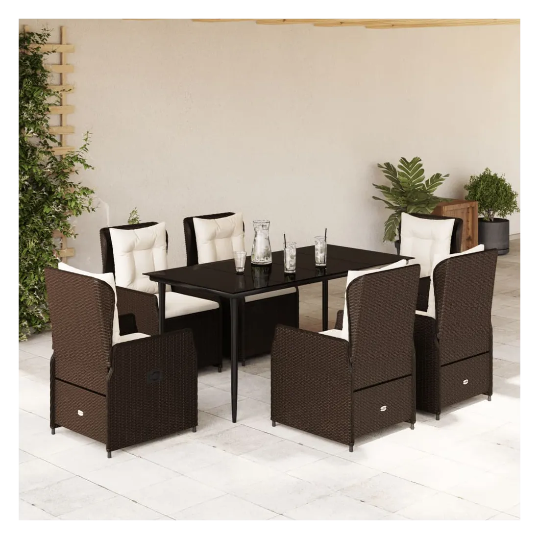 Cet ensemble de salle à manger de jardin est un excellent choix pour les repas en plein air ou pour vous détendre dans le jardin, dans l'arrière-cour ou sur la terrasse. Matériau durable : la résine tressée, également connue sous le nom de poly rotin, est un matériau synthétique solide et nécessitant peu d'entretien qui ressemble au rotin naturel. Il est léger, facile à nettoyer et couramment utilisé pour les meubles d'extérieur en raison de sa durabilité et de ses propriétés de résistance aux intempéries.Dossier réglable : ce siège de jardin est doté d'une poignée. Vous pouvez régler le dossier dans n'importe quelle position en tirant sur la poignée et le remettre rapidement dans sa position initiale.Expérience d'assise confortable : ce mobilier d'extérieur, doté de coussins épais, offre une expérience d'assise confortable.Housse amovible et lavable : le coussin de siège est doté d'une housse amovible pour un lavage et un entretien faciles.Dessus en verre : le dessus de la table d'extérieur est fabriqué en verre trempé solide et durable, ce qui le rend facile à nettoyer avec un chiffon humide et ajoute une touche d'élégance à votre espace extérieur. Bon à savoir :Pour que vos meubles d'extérieur restent beaux, nous vous recommandons de les protéger avec une housse imperméable.