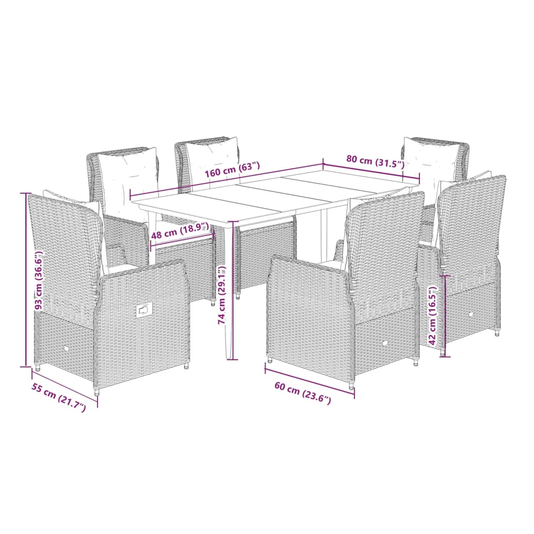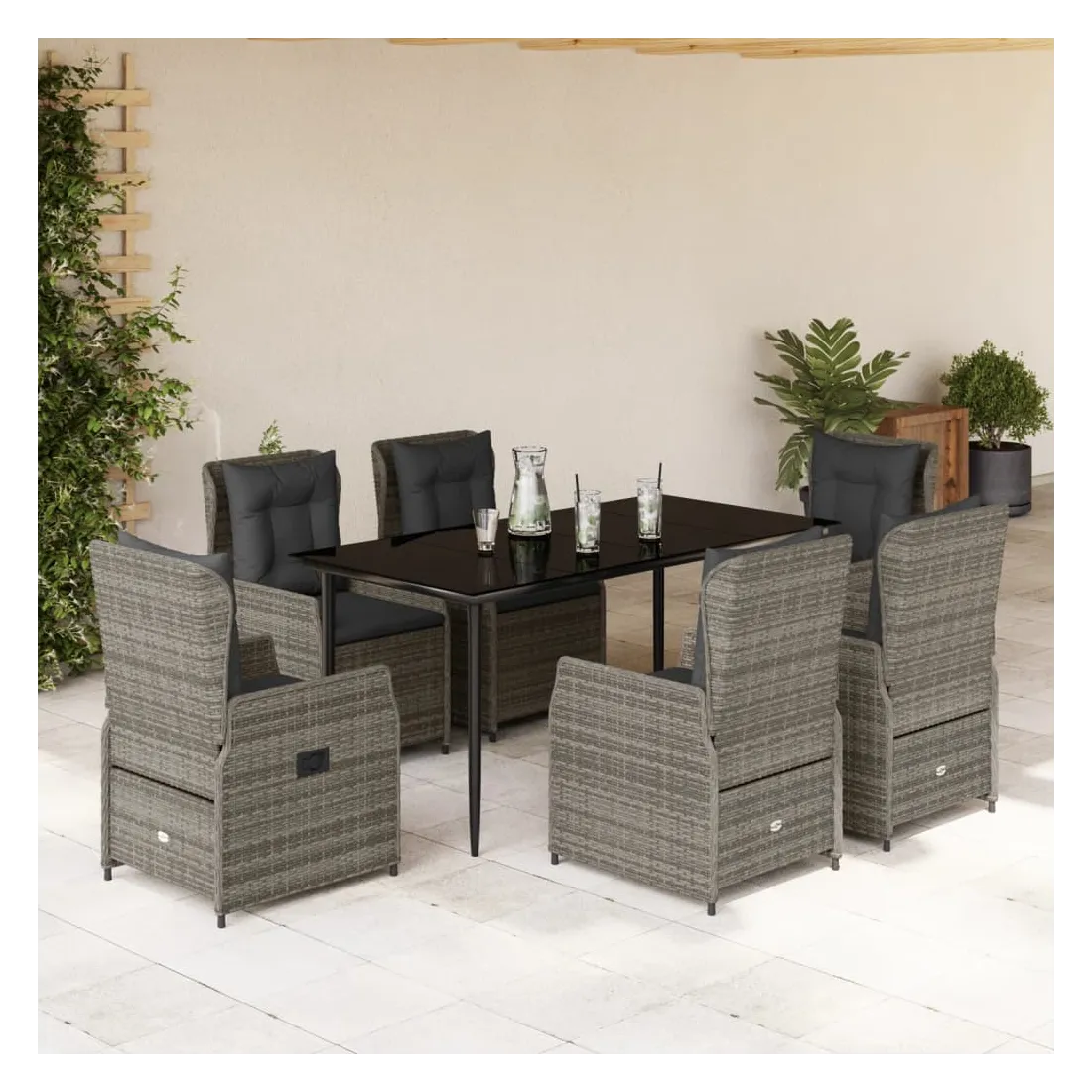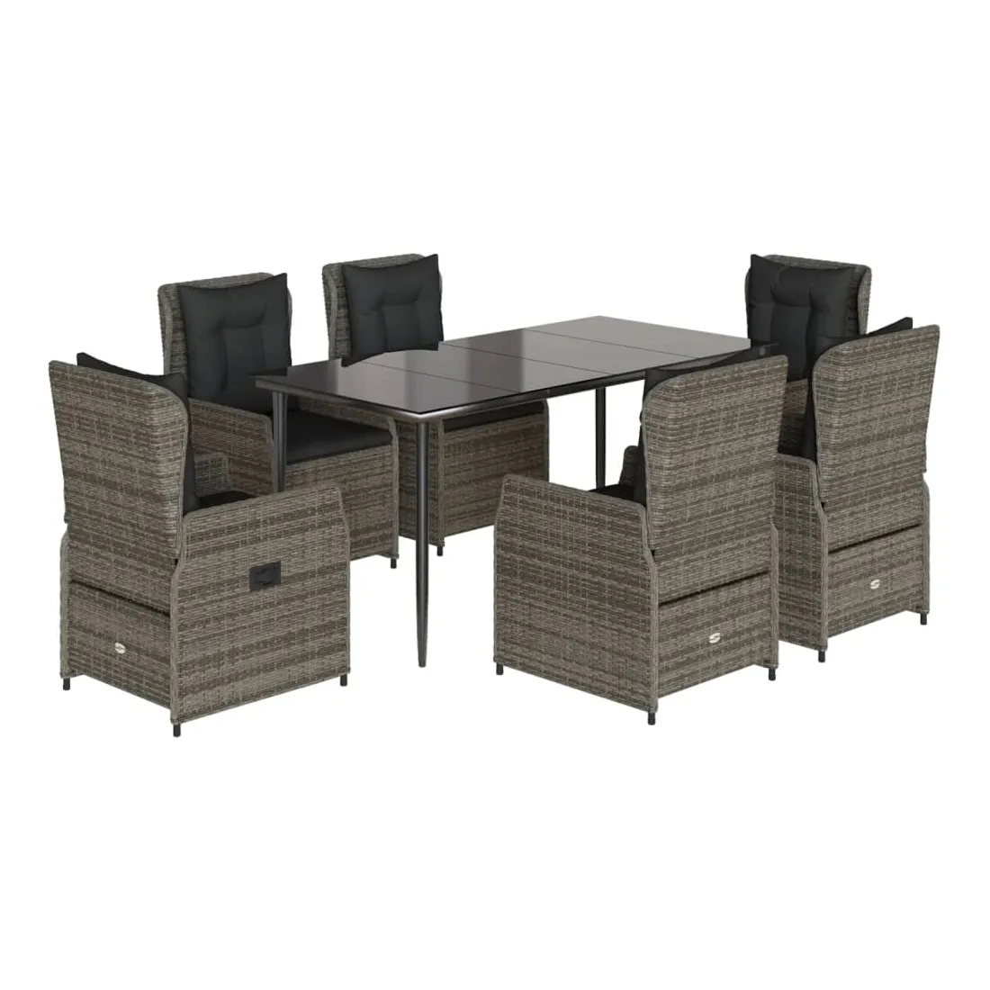 Ensemble à manger de jardin et coussins 7 pcs gris rotin
