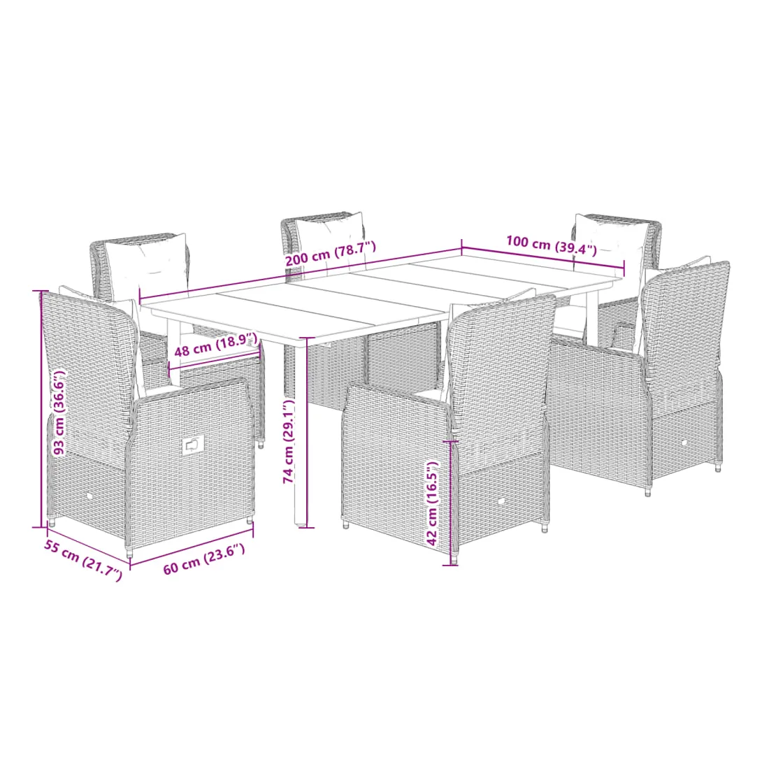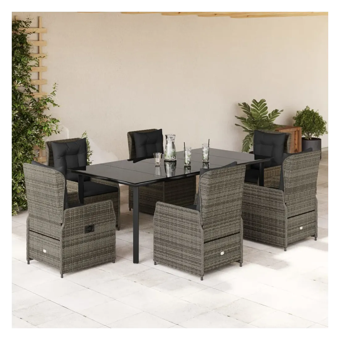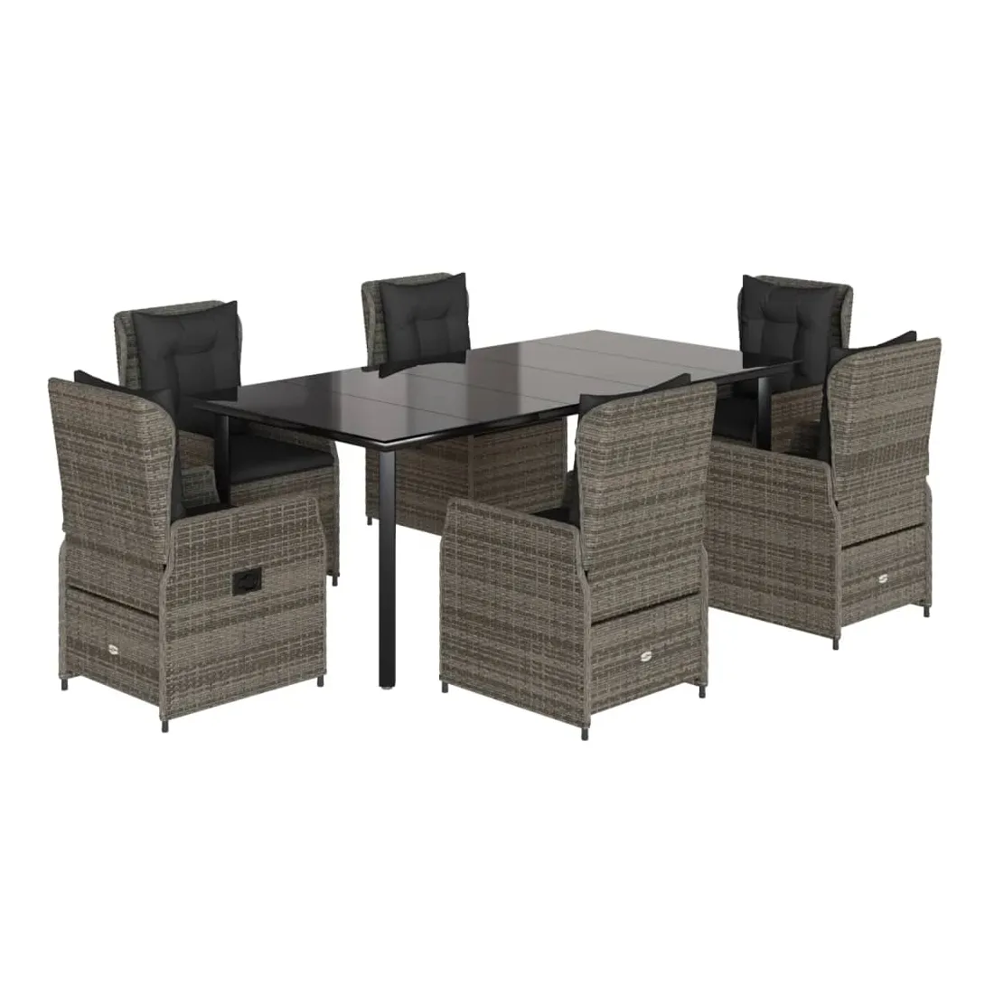 Ensemble à manger de jardin et coussins 7 pcs gris rotin