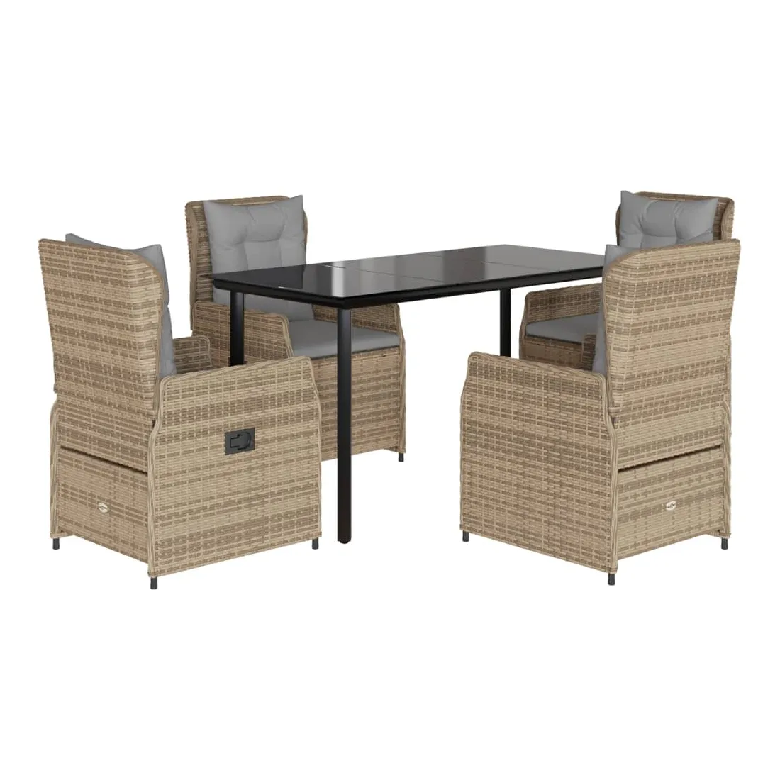 Cet ensemble de salle à manger de jardin est un excellent choix pour les repas en plein air ou pour vous détendre dans le jardin, dans l'arrière-cour ou sur la terrasse. Matériau durable : la résine tressée, également connue sous le nom de poly rotin, est un matériau synthétique solide et nécessitant peu d'entretien qui ressemble au rotin naturel. Il est léger, facile à nettoyer et couramment utilisé pour les meubles d'extérieur en raison de sa durabilité et de ses propriétés de résistance aux intempéries.Dossier réglable : ce siège de jardin est doté d'une poignée. Vous pouvez régler le dossier dans n'importe quelle position en tirant sur la poignée et le remettre rapidement dans sa position initiale.Expérience d'assise confortable : ce mobilier d'extérieur, doté de coussins épais, offre une expérience d'assise confortable.Housse amovible et lavable : le coussin de siège est doté d'une housse amovible pour un lavage et un entretien faciles.Dessus en verre : le dessus de la table d'extérieur est fabriqué en verre trempé solide et durable, ce qui le rend facile à nettoyer avec un chiffon humide et ajoute une touche d'élégance à votre espace extérieur. Bon à savoir :Pour que vos meubles d'extérieur restent beaux, nous vous recommandons de les protéger avec une housse imperméable.