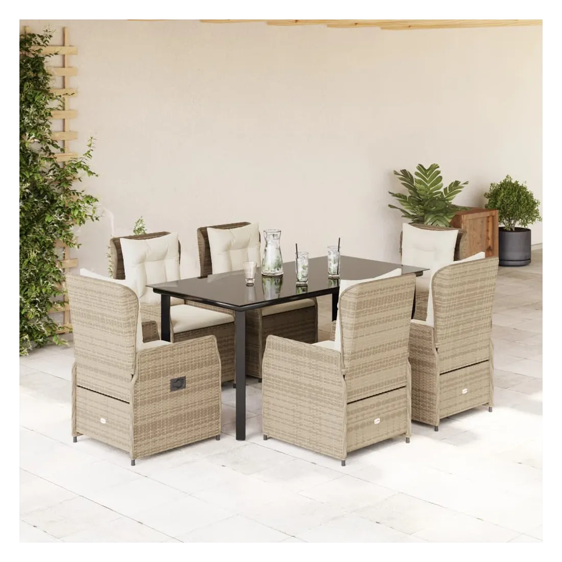 Ensemble à manger de jardin et coussins 7 pcs beige poly rotin