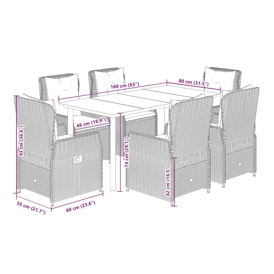vidaXLCet ensemble de salle à manger de jardin est un excellent choix pour les repas en plein air ou pour vous détendre dans le jardin, dans l'arrière-cour ou sur la terrasse. Matériau durable : la résine tressée, également connue sous le nom de poly rotin, est un matériau synthétique solide et nécessitant peu d'entretien qui ressemble au rotin naturel. Il est léger, facile à nettoyer et couramment utilisé pour les meubles d'extérieur en raison de sa durabilité et de ses propriétés de résistance aux intempéries.Dossier réglable : ce siège de jardin est doté d'une poignée. Vous pouvez régler le dossier dans n'importe quelle position en tirant sur la poignée et le remettre rapidement dans sa position initiale.Expérience d'assise confortable : ce mobilier d'extérieur, doté de coussins épais, offre une expérience d'assise confortable.Housse amovible et lavable : le coussin de siège est doté d'une housse amovible pour un lavage et un entretien faciles.Dessus en verre : le dessus de la table d'extérieur est fabriqué en verre trempé solide et durable, ce qui le rend facile à nettoyer avec un chiffon humide et ajoute une touche d'élégance à votre espace extérieur. Bon à savoir :Pour que vos meubles d'extérieur restent beaux, nous vous recommandons de les protéger avec une housse imperméable.