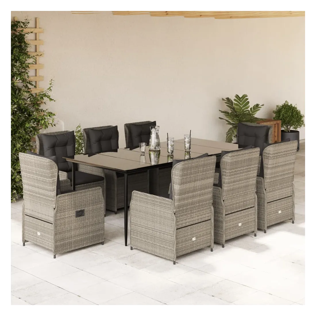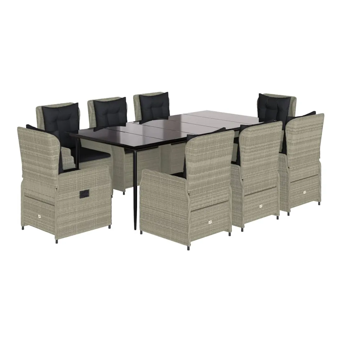 Ensemble à manger de jardin et coussins 9 pcs gris clair rotin