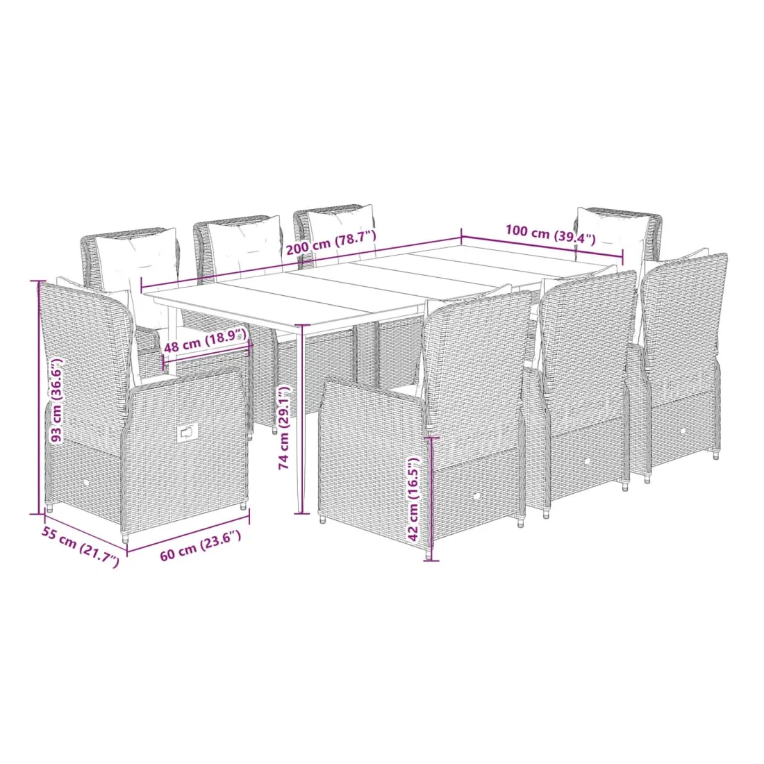 • Dimensions : 200 x 100 x 74 cm (L x l x H)