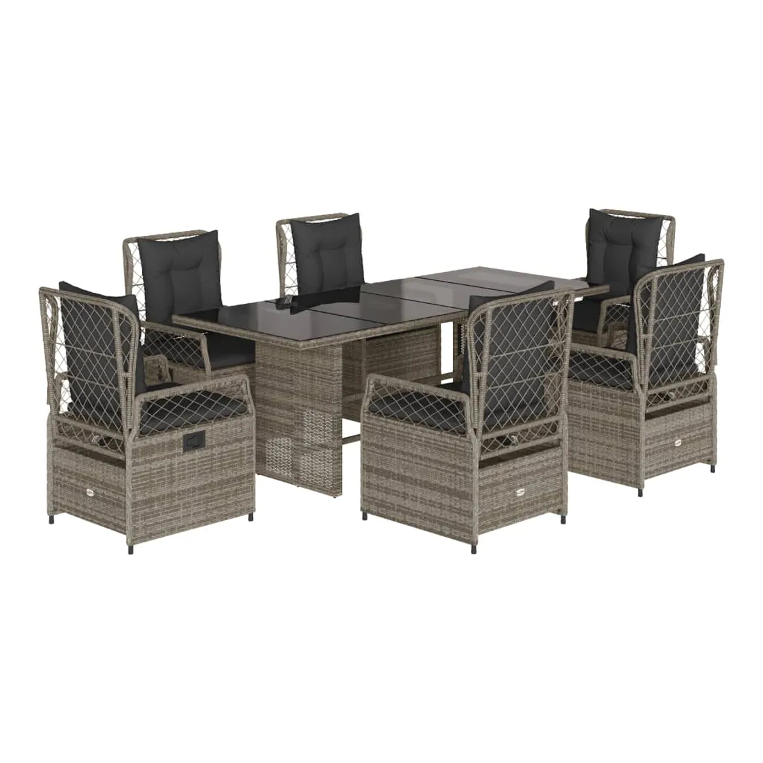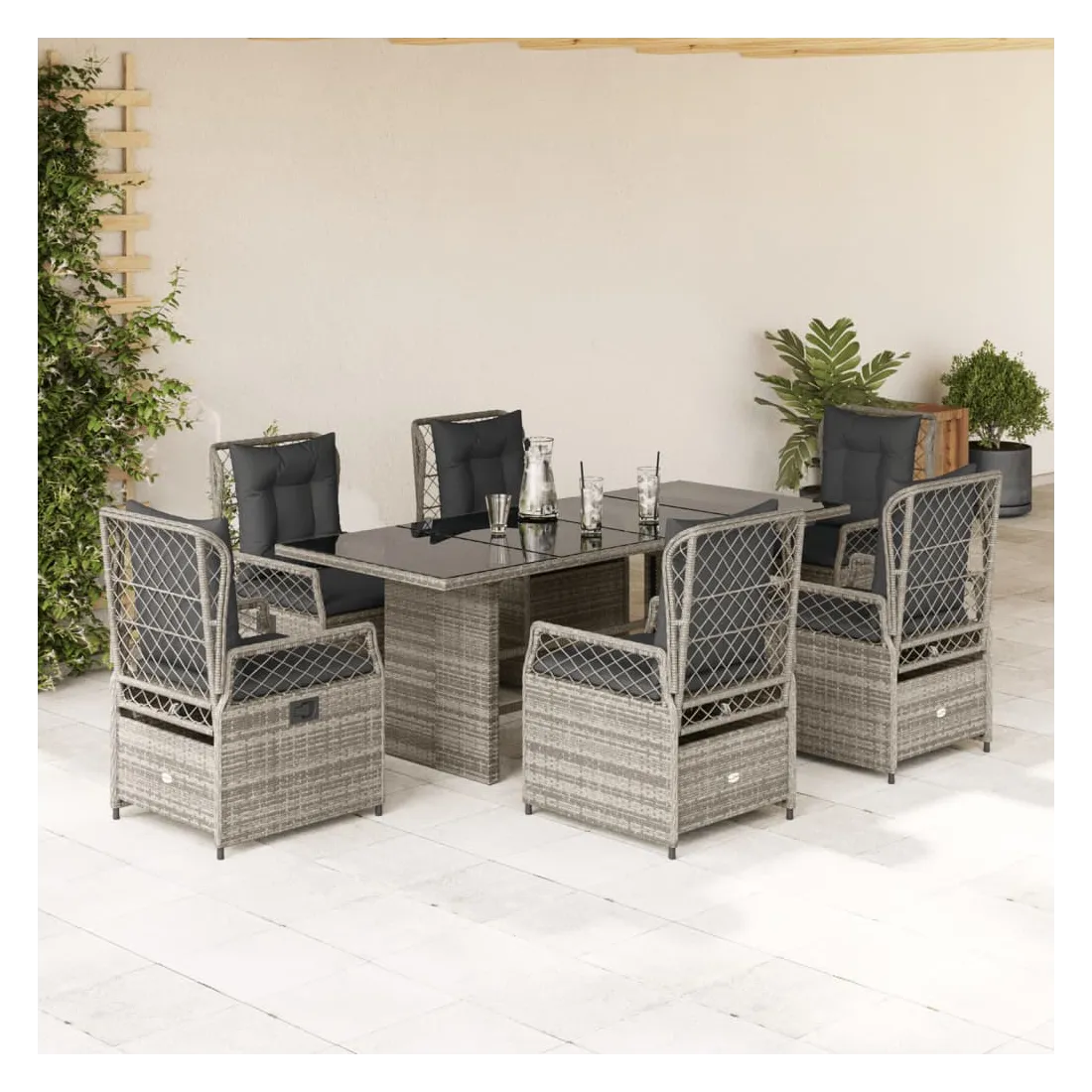 Cet ensemble de salle à manger de jardin est un excellent choix pour les repas en plein air ou pour vous détendre dans le jardin, dans l'arrière-cour ou sur la terrasse. Matériau durable : la résine tressée, également connue sous le nom de poly rotin, est un matériau synthétique solide et nécessitant peu d'entretien qui ressemble au rotin naturel. Il est léger, facile à nettoyer et couramment utilisé pour les meubles d'extérieur en raison de sa durabilité et de ses propriétés de résistance aux intempéries.Dossier réglable : ce siège de jardin est doté d'une poignée. Vous pouvez régler le dossier dans n'importe quelle position en tirant sur la poignée et le remettre rapidement dans sa position initiale.Expérience d'assise confortable : ce mobilier d'extérieur, doté de coussins épais, offre une expérience d'assise confortable.Housse amovible et lavable : le coussin de siège est doté d'une housse amovible pour un lavage et un entretien faciles.Dessus en verre : le dessus de la table d'extérieur est fabriqué en verre trempé solide et durable, ce qui le rend facile à nettoyer avec un chiffon humide et ajoute une touche d'élégance à votre espace extérieur. Bon à savoir :Pour que vos meubles d'extérieur restent beaux, nous vous recommandons de les protéger avec une housse imperméable.