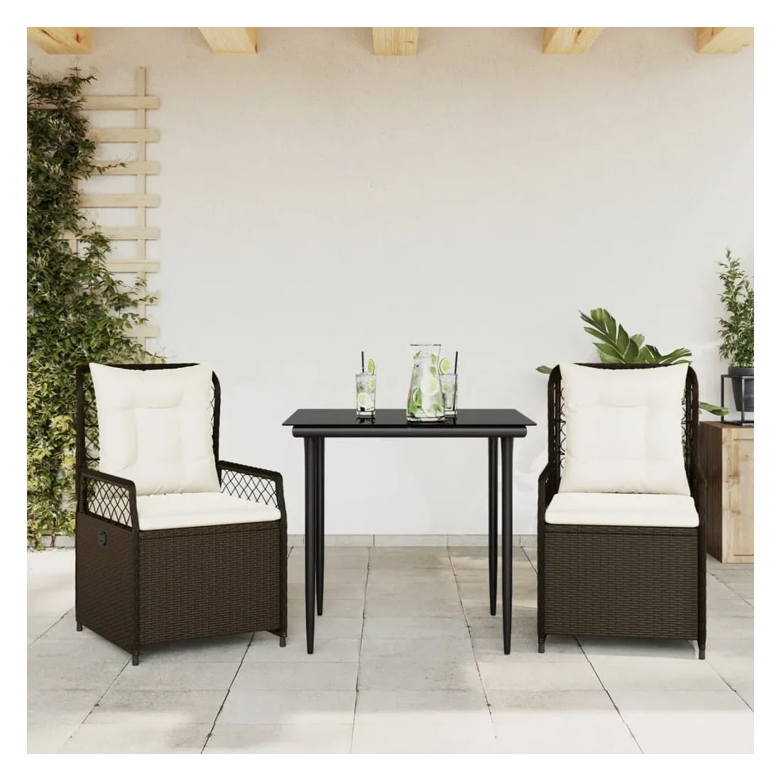 Cet ensemble de salle à manger de jardin est un excellent choix pour les repas en plein air ou pour vous détendre dans le jardin, dans l'arrière-cour ou sur la terrasse. Matériau durable : la résine tressée, également connue sous le nom de poly rotin, est un matériau synthétique solide et nécessitant peu d'entretien qui ressemble au rotin naturel. Il est léger, facile à nettoyer et couramment utilisé pour les meubles d'extérieur en raison de sa durabilité et de ses propriétés de résistance aux intempéries.Dossier réglable : ce siège de jardin est doté d'une poignée. Vous pouvez régler le dossier dans n'importe quelle position en tirant sur la poignée et le remettre rapidement dans sa position initiale.Expérience d'assise confortable : ce mobilier d'extérieur, doté de coussins épais, offre une expérience d'assise confortable.Housse amovible et lavable : le coussin de siège est doté d'une housse amovible pour un lavage et un entretien faciles.Dessus en verre : le dessus de la table d'extérieur est fabriqué en verre trempé solide et durable, ce qui le rend facile à nettoyer avec un chiffon humide et ajoute une touche d'élégance à votre espace extérieur. Bon à savoir :Pour que vos meubles d'extérieur restent beaux, nous vous recommandons de les protéger avec une housse imperméable.