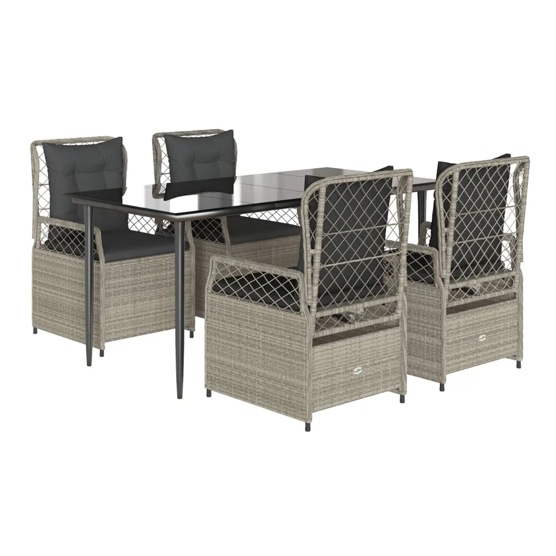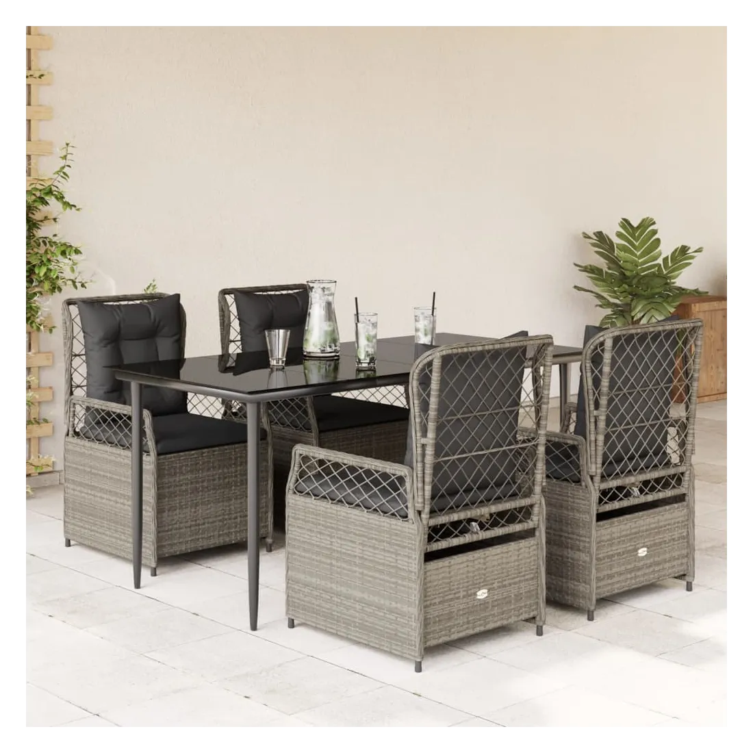Cet ensemble de salle à manger de jardin est un excellent choix pour les repas en plein air ou pour vous détendre dans le jardin, dans l'arrière-cour ou sur la terrasse. Matériau durable : la résine tressée, également connue sous le nom de poly rotin, est un matériau synthétique solide et nécessitant peu d'entretien qui ressemble au rotin naturel. Il est léger, facile à nettoyer et couramment utilisé pour les meubles d'extérieur en raison de sa durabilité et de ses propriétés de résistance aux intempéries.Dossier réglable : ce siège de jardin est doté d'une poignée. Vous pouvez régler le dossier dans n'importe quelle position en tirant sur la poignée et le remettre rapidement dans sa position initiale.Expérience d'assise confortable : ce mobilier d'extérieur, doté de coussins épais, offre une expérience d'assise confortable.Housse amovible et lavable : le coussin de siège est doté d'une housse amovible pour un lavage et un entretien faciles.Dessus en verre : le dessus de la table d'extérieur est fabriqué en verre trempé solide et durable, ce qui le rend facile à nettoyer avec un chiffon humide et ajoute une touche d'élégance à votre espace extérieur. Bon à savoir :Pour que vos meubles d'extérieur restent beaux, nous vous recommandons de les protéger avec une housse imperméable.