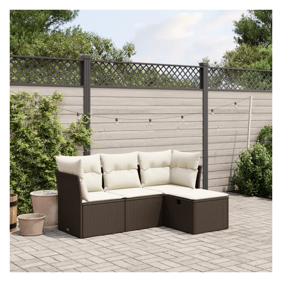 Cet ensemble de canapés de jardin est le complément parfait de votre arrière-cour, terrasse ou patio, offrant un espace confortable et accueillant pour discuter avec la famille et les amis ou simplement se détendre et profiter de l'extérieur. Matériau durable : la résine tressée, également connue sous le nom de poly rotin, est un matériau synthétique solide et nécessitant peu d'entretien qui ressemble au rotin naturel. Il est léger, facile à nettoyer et couramment utilisé pour les meubles d'extérieur en raison de sa durabilité et de ses propriétés de résistance aux intempéries.Expérience d'assise confortable : ce mobilier d'extérieur, doté de coussins épais, offre une expérience d'assise confortable.Housse amovible et lavable : ces coussins de siège sont dotés de housses amovibles pour un lavage et un entretien faciles.Cadre robuste et stable : le cadre en acier enduit de poudre assure la solidité et la stabilité du meuble de jardin pour une utilisation quotidienne à l'extérieur.Conception modulaire : cet ensemble de meubles d'extérieur a une conception modulaire, ce qui le rend complètement flexible et facile à déplacer, afin que vous puissiez créer un agencement de meubles d'extérieur personnalisé. Bon à savoir :Pour que vos meubles d'extérieur restent beaux, nous vous recommandons de les protéger avec une housse imperméable.