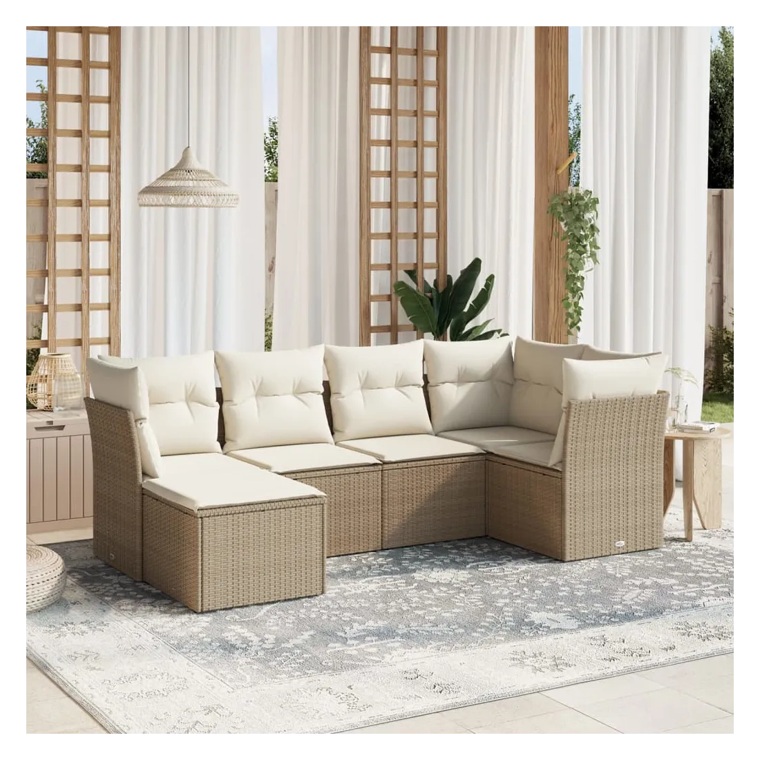 Cet ensemble de canapés de jardin est le complément parfait de votre arrière-cour, terrasse ou patio, offrant un espace confortable et accueillant pour discuter avec la famille et les amis ou simplement se détendre et profiter de l'extérieur. Matériau durable : la résine tressée, également connue sous le nom de poly rotin, est un matériau synthétique solide et nécessitant peu d'entretien qui ressemble au rotin naturel. Il est léger, facile à nettoyer et couramment utilisé pour les meubles d'extérieur en raison de sa durabilité et de ses propriétés de résistance aux intempéries.Expérience d'assise confortable : ce mobilier d'extérieur, doté de coussins épais, offre une expérience d'assise confortable.Housse amovible et lavable : ces coussins de siège sont dotés de housses amovibles pour un lavage et un entretien faciles.Cadre robuste et stable : le cadre en acier enduit de poudre assure la solidité et la stabilité du meuble de jardin pour une utilisation quotidienne à l'extérieur.Conception modulaire : cet ensemble de meubles d'extérieur a une conception modulaire, ce qui le rend complètement flexible et facile à déplacer, afin que vous puissiez créer un agencement de meubles d'extérieur personnalisé. Bon à savoir :Pour que vos meubles d'extérieur restent beaux, nous vous recommandons de les protéger avec une housse imperméable.