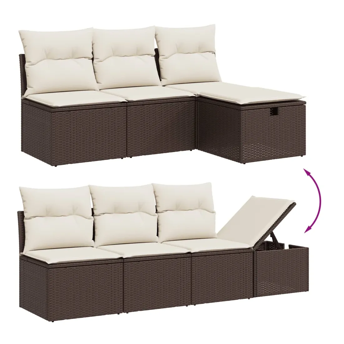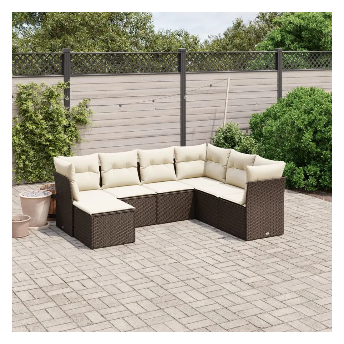 Cet ensemble de canapés de jardin est le complément parfait de votre arrière-cour, terrasse ou patio, offrant un espace confortable et accueillant pour discuter avec la famille et les amis ou simplement se détendre et profiter de l'extérieur. Matériau durable : la résine tressée, également connue sous le nom de poly rotin, est un matériau synthétique solide et nécessitant peu d'entretien qui ressemble au rotin naturel. Il est léger, facile à nettoyer et couramment utilisé pour les meubles d'extérieur en raison de sa durabilité et de ses propriétés de résistance aux intempéries.Expérience d'assise confortable : ce mobilier d'extérieur, doté de coussins épais, offre une expérience d'assise confortable.Housse amovible et lavable : ces coussins de siège sont dotés de housses amovibles pour un lavage et un entretien faciles.Cadre robuste et stable : le cadre en acier enduit de poudre assure la solidité et la stabilité du meuble de jardin pour une utilisation quotidienne à l'extérieur.Conception modulaire : cet ensemble de meubles d'extérieur a une conception modulaire, ce qui le rend complètement flexible et facile à déplacer, afin que vous puissiez créer un agencement de meubles d'extérieur personnalisé. Bon à savoir :Pour que vos meubles d'extérieur restent beaux, nous vous recommandons de les protéger avec une housse imperméable.