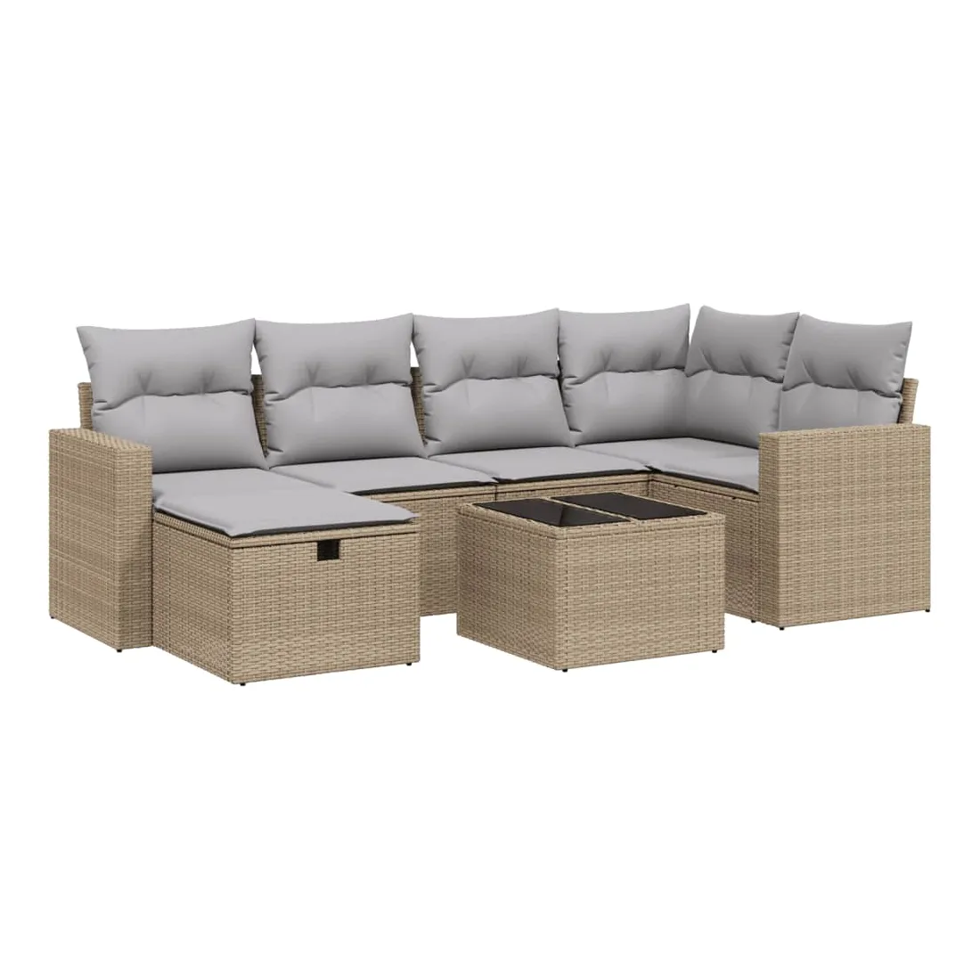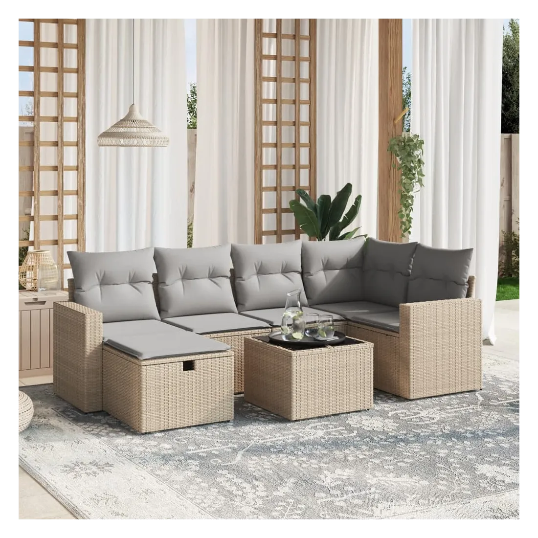 Cet ensemble de canapés de jardin est le complément parfait de votre arrière-cour, terrasse ou patio, offrant un espace confortable et accueillant pour discuter avec la famille et les amis ou simplement se détendre et profiter de l'extérieur. Matériau durable : la résine tressée, également connue sous le nom de poly rotin, est un matériau synthétique solide et nécessitant peu d'entretien qui ressemble au rotin naturel. Il est léger, facile à nettoyer et couramment utilisé pour les meubles d'extérieur en raison de sa durabilité et de ses propriétés de résistance aux intempéries.Dessus en verre : le dessus de la table d'extérieur est fabriqué en verre trempé solide et durable, ce qui le rend facile à nettoyer avec un chiffon humide et ajoute une touche d'élégance à votre espace extérieur.Housse amovible et lavable : ces coussins de siège sont dotés de housses amovibles pour un lavage et un entretien faciles.Cadre robuste et stable : le cadre en acier enduit de poudre assure la solidité et la stabilité du meuble de jardin pour une utilisation quotidienne à l'extérieur.Conception modulaire : cet ensemble de meubles d'extérieur a une conception modulaire, ce qui le rend complètement flexible et facile à déplacer, afin que vous puissiez créer un agencement de meubles d'extérieur personnalisé. Bon à savoir :Pour que vos meubles d'extérieur restent beaux, nous vous recommandons de les protéger avec une housse imperméable.