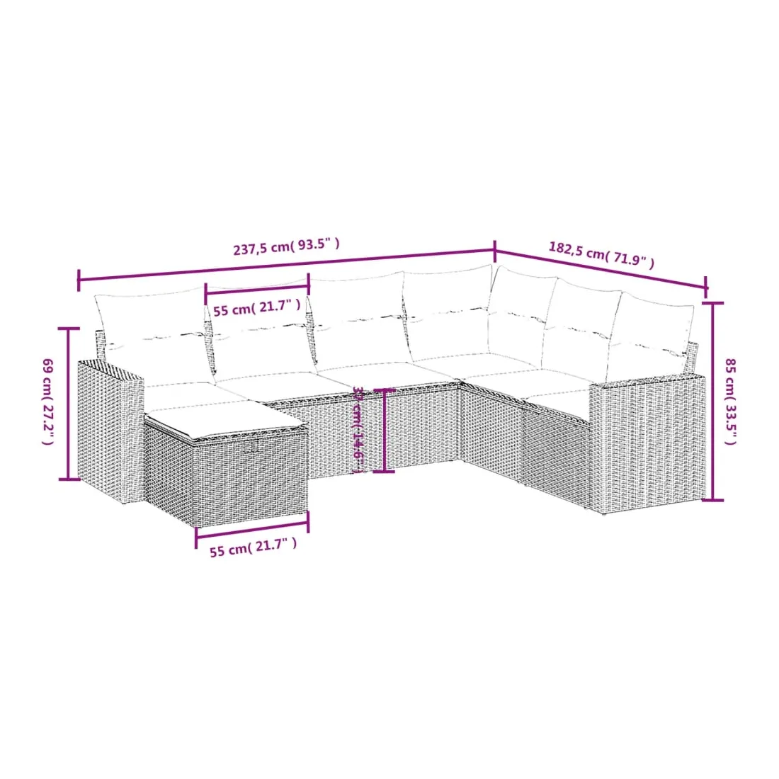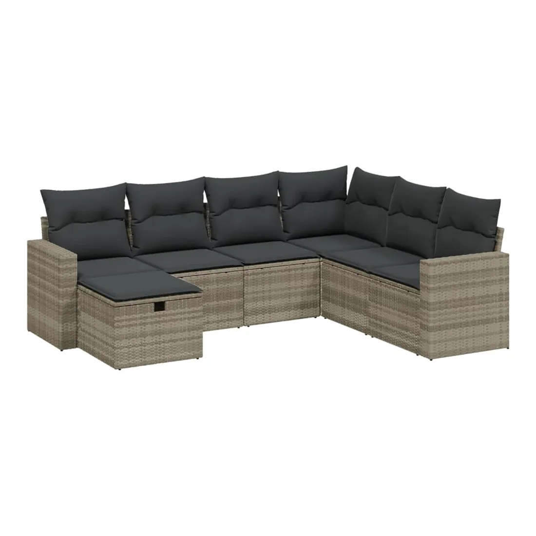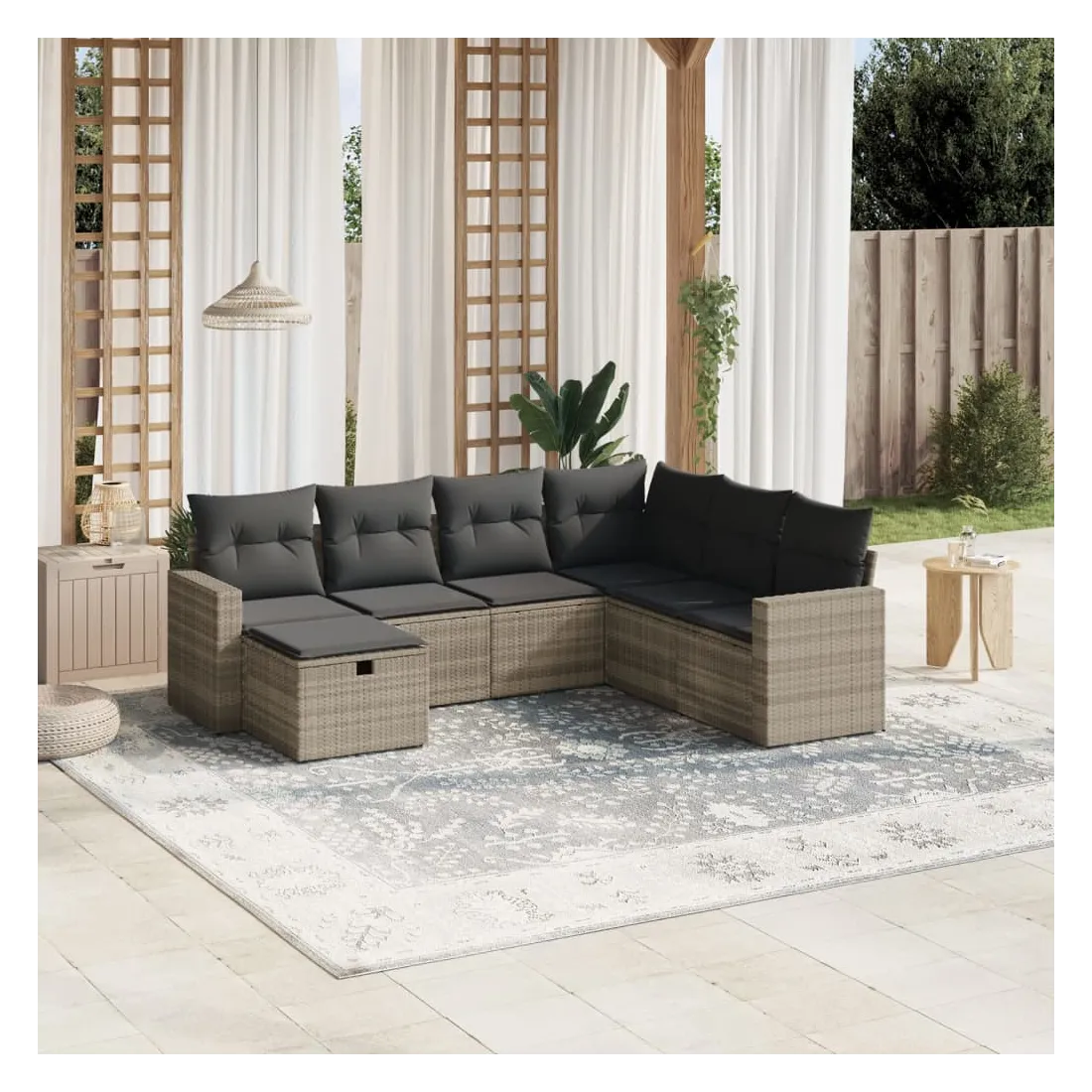 Salon de jardin avec coussins 7 pcs gris clair résine tressée