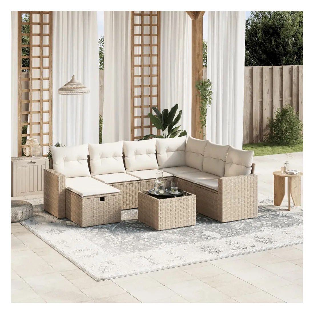 Cet ensemble de canapés de jardin est le complément parfait de votre arrière-cour, terrasse ou patio, offrant un espace confortable et accueillant pour discuter avec la famille et les amis ou simplement se détendre et profiter de l'extérieur. Matériau durable : la résine tressée, également connue sous le nom de poly rotin, est un matériau synthétique solide et nécessitant peu d'entretien qui ressemble au rotin naturel. Il est léger, facile à nettoyer et couramment utilisé pour les meubles d'extérieur en raison de sa durabilité et de ses propriétés de résistance aux intempéries.Dessus en verre : le dessus de la table d'extérieur est fabriqué en verre trempé solide et durable, ce qui le rend facile à nettoyer avec un chiffon humide et ajoute une touche d'élégance à votre espace extérieur.Housse amovible et lavable : ces coussins de siège sont dotés de housses amovibles pour un lavage et un entretien faciles.Cadre robuste et stable : le cadre en acier enduit de poudre assure la solidité et la stabilité du meuble de jardin pour une utilisation quotidienne à l'extérieur.Conception modulaire : cet ensemble de meubles d'extérieur a une conception modulaire, ce qui le rend complètement flexible et facile à déplacer, afin que vous puissiez créer un agencement de meubles d'extérieur personnalisé. Bon à savoir :Pour que vos meubles d'extérieur restent beaux, nous vous recommandons de les protéger avec une housse imperméable.