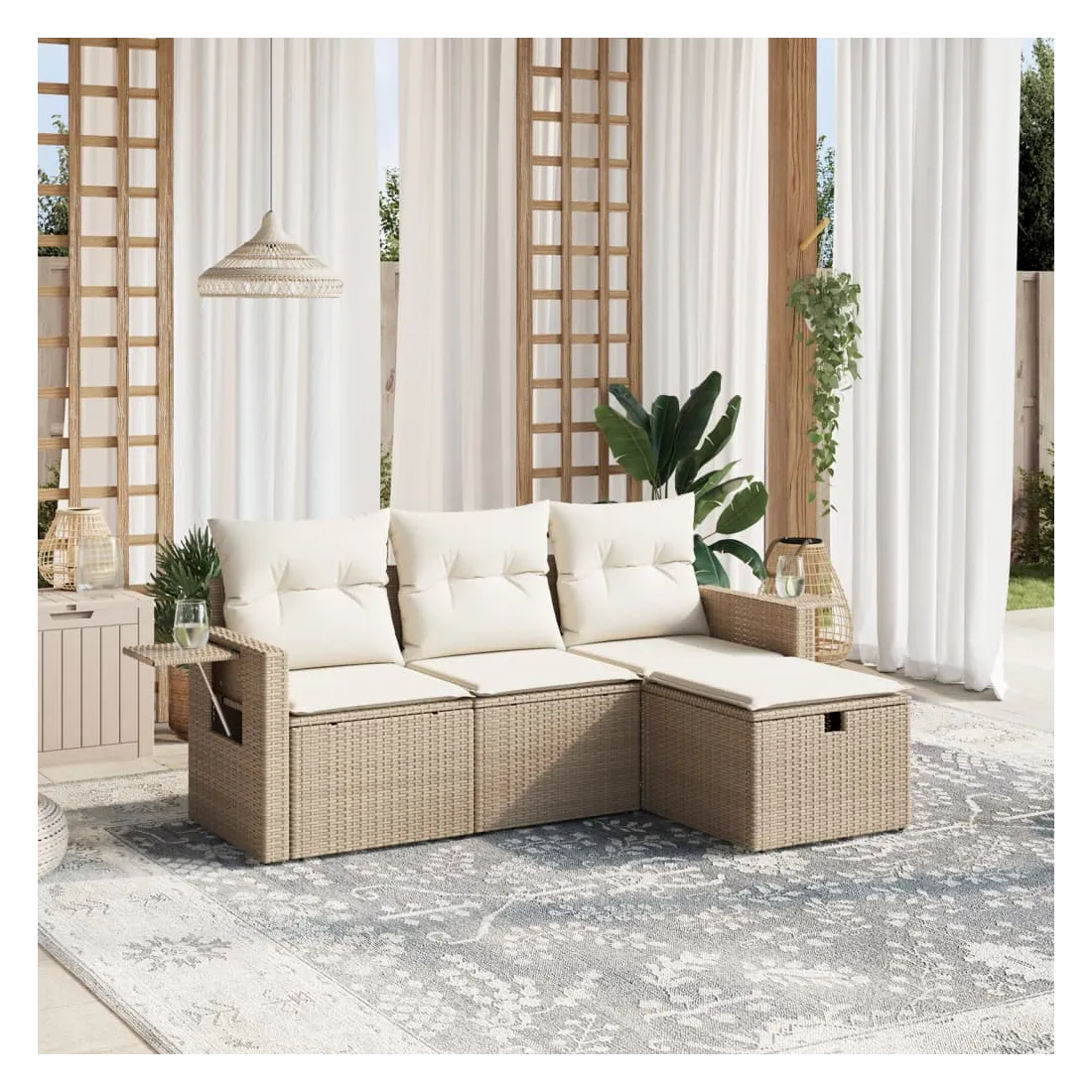 Cet ensemble de canapés de jardin est le complément parfait de votre arrière-cour, terrasse ou patio, offrant un espace confortable et accueillant pour discuter avec la famille et les amis ou simplement se détendre et profiter de l'extérieur. Matériau durable : la résine tressée, également connue sous le nom de poly rotin, est un matériau synthétique solide et nécessitant peu d'entretien qui ressemble au rotin naturel. Il est léger, facile à nettoyer et couramment utilisé pour les meubles d'extérieur en raison de sa durabilité et de ses propriétés de résistance aux intempéries.Expérience d'assise confortable : ce mobilier d'extérieur, doté de coussins épais, offre une expérience d'assise confortable.Housse amovible et lavable : ces coussins de siège sont dotés de housses amovibles pour un lavage et un entretien faciles.Cadre robuste et stable : le cadre en acier enduit de poudre assure la solidité et la stabilité du meuble de jardin pour une utilisation quotidienne à l'extérieur.Conception modulaire : cet ensemble de meubles d'extérieur a une conception modulaire, ce qui le rend complètement flexible et facile à déplacer, afin que vous puissiez créer un agencement de meubles d'extérieur personnalisé. Bon à savoir :Pour que vos meubles d'extérieur restent beaux, nous vous recommandons de les protéger avec une housse imperméable.