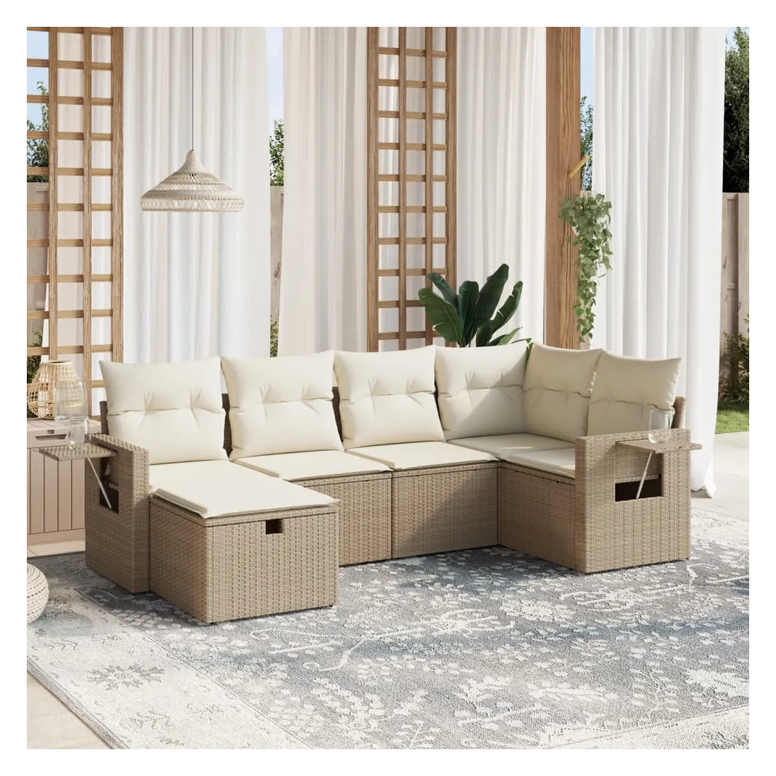 Cet ensemble de canapés de jardin est le complément parfait de votre arrière-cour, terrasse ou patio, offrant un espace confortable et accueillant pour discuter avec la famille et les amis ou simplement se détendre et profiter de l'extérieur. Matériau durable : la résine tressée, également connue sous le nom de poly rotin, est un matériau synthétique solide et nécessitant peu d'entretien qui ressemble au rotin naturel. Il est léger, facile à nettoyer et couramment utilisé pour les meubles d'extérieur en raison de sa durabilité et de ses propriétés de résistance aux intempéries.Expérience d'assise confortable : ce mobilier d'extérieur, doté de coussins épais, offre une expérience d'assise confortable.Housse amovible et lavable : ces coussins de siège sont dotés de housses amovibles pour un lavage et un entretien faciles.Cadre robuste et stable : le cadre en acier enduit de poudre assure la solidité et la stabilité du meuble de jardin pour une utilisation quotidienne à l'extérieur.Conception modulaire : cet ensemble de meubles d'extérieur a une conception modulaire, ce qui le rend complètement flexible et facile à déplacer, afin que vous puissiez créer un agencement de meubles d'extérieur personnalisé. Bon à savoir :Pour que vos meubles d'extérieur restent beaux, nous vous recommandons de les protéger avec une housse imperméable.